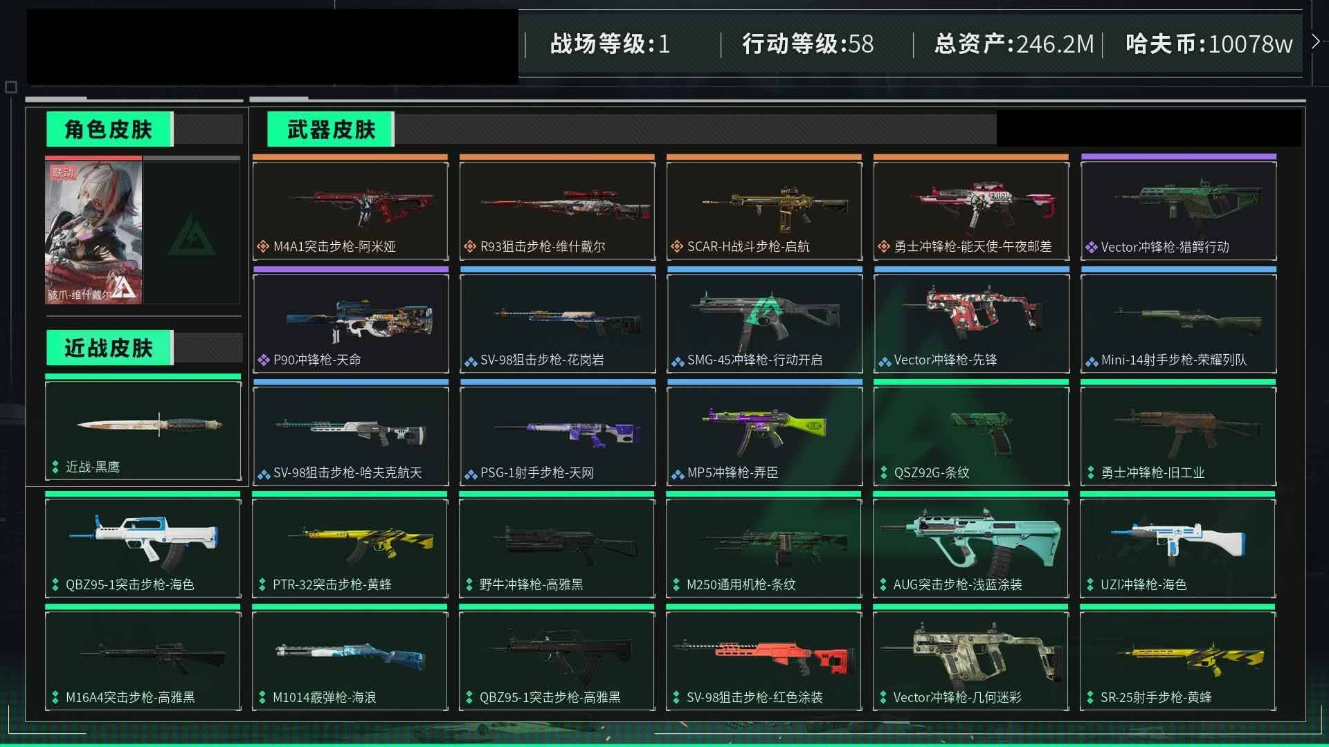 【云游堂】 惠1341825总资产246M,哈夫币10078w,枪皮数量29,战场等级:1 无军衔,行动等级:58 青铜,角色皮肤数量1,骇爪-维什戴尔,近战-黑鹰,安全箱等【个人信息】战场等级:1 无军衔,行动等级:58 青铜【哈夫币】10078w【总资产】246M【货币】0三角币/0曼德尔币/0三角券【安全箱】基础安全箱2(1x2)/进阶安全箱4(2x2)【通行证】通行证免费版【特勤处】制药台Lv.3/工作台Lv.3/仓库Lv.6/防具台Lv.3/训练中心Lv.4/靶场Lv.4/技术中心Lv.3/指挥中心Lv.3/潜水中心Lv.0/收藏室Lv.0【仓库】非洲之心/【角色皮肤】骇爪-维什戴尔/【近战皮肤】近战-黑鹰/【步枪皮肤】M4A1突击步枪-阿米娅/SCAR-H战斗步枪-启航/SR-3M紧凑突击步枪-战术竞备/【冲锋枪皮肤】勇士冲锋枪-能天使-午夜邮差/P90冲锋枪-天命/Vector冲锋枪-猎鳄行动/【狙击步枪皮肤】R93狙击步枪-维什戴尔/【挂饰】诡影狙击兵/诡影喷火兵/挂饰-维什戴尔/挂饰-启程/挂饰-蚀金玫瑰/紧急会议/(典藏皮肤颜色请以典藏展示为准,安全箱等时效性道具请以游戏内数据为准)