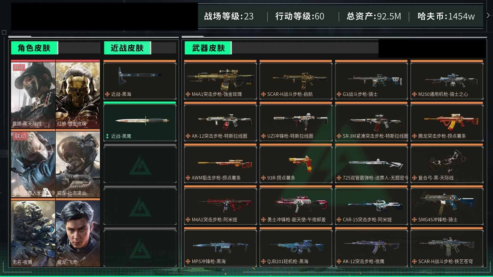 【云游堂】 惠3200508 总资产92M,哈夫币1454w,枪皮数量241,战场等级:23 列兵,行动等级:60 铂金,角色皮肤数量6,露娜-黑天际线/红狼-蚀金玫瑰/蜂医-送葬人【个人信息】战场等级:23 列兵,行动等级:60 铂金【哈夫币】1454w【总资产】92M【货币】28三角币/25曼德尔币/0三角券【安全箱】基础安全箱2(1x2)/S6高级安全箱6(2x3)/S6顶级安全箱9(3x3)【通行证】烽火地带限定版【特勤处】制药台Lv.3/工作台Lv.3/仓库Lv.9/防具台Lv.3/训练中心Lv.7/靶场Lv.7/技术中心Lv.3/指挥中心Lv.6/潜水中心Lv.1/收藏室Lv.0【角色皮肤】露娜-黑天际线/红狼-蚀金玫瑰/威龙-壮志凌云/威龙-飞虎/无名-夜鹰/蜂医-送葬人无题密令/【已拥有捆绑包】黑海捆绑包/捞点薯条捆绑包/特斯拉线圈捆绑包/【近战皮肤】近战-黑鹰/近战-黑海/【步枪皮肤】M4A1突击步枪-蚀金玫瑰/QBZ95-1突击步枪-曙光/SCAR-H战斗步枪-铁艺苍穹/SR-3M紧凑突击步枪-英雄/QBZ95-1突击步枪-ACE/AUG突击步枪-蝮蛇/AUG突击步枪-特勤执行/M4A1突击步枪-特勤执行/M7战斗步枪-禁卫/PTR-32突击步枪-ACE/AK-12突击步枪-夜鹰/SG552突击步枪-深海恐惧/SG552突击步枪-尖端治疗/AS Val突击步枪-尖端治疗/ASh-12战斗步枪-守夜人/AKM突击步枪-林中猎手/腾龙突击步枪-无垢/SCAR-H战斗步枪-囚徒/M16A4突击步枪-竞赛选手/SR-3M紧凑突击步枪-荒野求生/CAR-15突击步枪-阿米娅/M4A1突击步枪-阿米娅/腾龙突击步枪-捞点薯条/AK-12突击步枪-特斯拉线圈/SR-3M紧凑突击步枪-特斯拉线圈/ASh-12战斗步枪-无极限/G3战斗步枪-骑士/SCAR-H战斗步枪-启航/SR-3M紧凑突击步枪-战术竞备/【冲锋枪皮肤】UZI冲锋枪-特斯拉线圈/Vector冲锋枪-阿萨拉文明/Vector冲锋枪-红色彗星/MP5冲锋枪-黑海/MP5冲锋枪-深海恐惧/勇士冲锋枪-深海恐惧/SMG45冲锋枪-骑士/MP7冲锋枪-无垢/勇士冲锋枪-能天使-午夜邮差/P90冲锋枪-紧急戒备/MP7冲锋枪-守护者/勇士冲锋枪-工业狂潮/P90冲锋枪-莫斯提马/【霰弹枪皮肤】S12K霰弹枪-曙光/M1014霰弹枪-林中猎手/725双管霰弹枪-送葬人-无题密令/【轻机枪皮肤】PKM通用机枪-蝮蛇/PKM通用机枪-英雄/QJB201轻机枪-黑海/PKM通用机枪-守夜人/PKM通用机枪-荒野求生/M250通用机枪-囚徒/QJB201轻机枪-OldHabits/M250通用机枪-骑士之心/【精准射手步枪皮肤】SR-25射手步枪-水墨云图/SKS射手步枪-ACE/SR-25射手步枪-尖端治疗/PSG-1射手步枪-无垢/【狙击步枪皮肤】SVD狙击步枪-阿萨拉工艺/M700狙击步枪-竞技风/SV-98狙击步枪-囚徒/M700狙击步枪-蝮蛇/SVD狙击步枪-暗夜猎手/M700狙击步枪-守夜人/SV-98狙击步枪-林中猎手/SVD狙击步枪-荒野求生/AWM狙击步枪-捞点薯条/SV-98狙击步枪-猎鳄行动/【手枪皮肤】沙漠之鹰-曙光/QSZ92G-风林火山/93R-博士/.357左轮-幸运时刻/93R-捞点薯条/【特殊武器】复合弓-黑-天际线/复合弓-守护者/【挂饰】挂饰-黄金坦克/挂饰-三联装手炮/王国之杖/诡影狙击兵/诡影喷火兵/挂饰-骑士之心/挂饰-启程/挂饰-蚀金玫瑰/持盾者/挂饰-王牌座驾/挂饰-Relink/挂饰-黑海/演出导演/重装记者/挂饰-小羊/挂饰-彩蛋/阿萨拉机枪兵/阿萨拉喷火兵/阿萨拉霰弹兵/阿萨拉狙击兵/挂饰-晶石幻想/挂饰-阿米娅/挂饰-来点薯条/挂饰-特斯拉线圈/阿萨拉徽章/紧急会议/(典藏皮肤颜色请以典藏展示为准,安全箱等时效性道具请以游戏内数据为准)