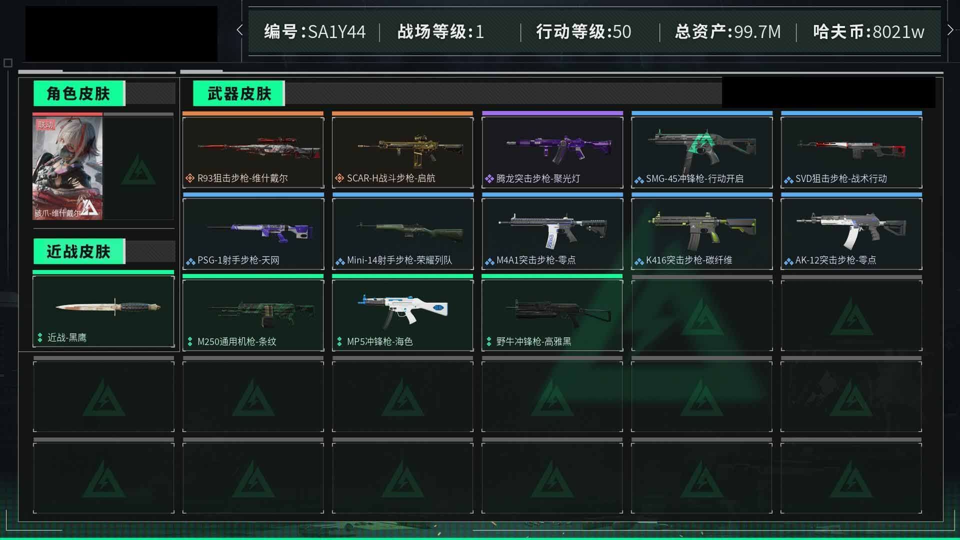 【云游堂】 R43798 可二次QQ【行动等级22】【总资产2.8m】【战场等级1】【刀:黑鹰】【蛊能天使午夜邮差】【scar战斗步枪启航+腾龙突击步枪捞点薯条+vector冲锋枪能天使+勇士冲锋枪能天使午夜邮差+awm狙击步枪捞点薯条+93R捞点薯条】详情请看图片【卖号买号首选亿梦】