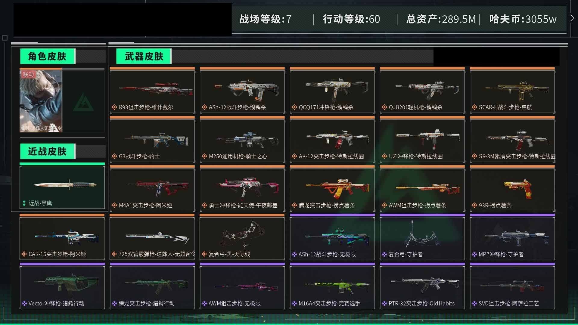 【云游堂】 惠2992538总资产289M,哈夫币3055w,枪皮数量124,战场等级:7 无军衔,行动等级:60 钻石,角色皮肤数量1,蜂医-送葬人无题密令,近战-黑鹰【个人信息】战场等级:7 无军衔,行动等级:60 钻石【哈夫币】3055w【总资产】289M【货币】202三角币/0曼德尔币/91三角券【安全箱】基础安全箱2(1x2)/S6高级安全箱6(2x3)/S6顶级安全箱9(3x3)【通行证】烽火地带限定版【特勤处】制药台Lv.3/工作台Lv.3/仓库Lv.7/防具台Lv.3/训练中心Lv.7/靶场Lv.6/技术中心Lv.3/指挥中心Lv.6/潜水中心Lv.2/收藏室Lv.1【角色皮肤】蜂医-送葬人无题密令/【已拥有捆绑包】捞点薯条捆绑包/特斯拉线圈捆绑包/【近战皮肤】近战-黑鹰/【步枪皮肤】腾龙突击步枪-无垢/SCAR-H战斗步枪-囚徒/M16A4突击步枪-竞赛选手/SR-3M紧凑突击步枪-荒野求生/CAR-15突击步枪-阿米娅/M4A1突击步枪-阿米娅/腾龙突击步枪-捞点薯条/AK-12突击步枪-特斯拉线圈/SR-3M紧凑突击步枪-特斯拉线圈/PTR-32突击步枪-OldHabits/腾龙突击步枪-猎鳄行动/ASh-12战斗步枪-无极限/G3战斗步枪-骑士/ASh-12战斗步枪-鹅鸭杀/SCAR-H战斗步枪-启航/SR-3M紧凑突击步枪-战术竞备/【冲锋枪皮肤】UZI冲锋枪-特斯拉线圈/勇士冲锋枪-深海恐惧/MP7冲锋枪-无垢/勇士冲锋枪-能天使-午夜邮差/P90冲锋枪-紧急戒备/Vector冲锋枪-猎鳄行动/MP7冲锋枪-守护者/勇士冲锋枪-工业狂潮/QCQ171冲锋枪-鹅鸭杀/MP5冲锋枪-战术竞备/【霰弹枪皮肤】725双管霰弹枪-送葬人-无题密令/【轻机枪皮肤】PKM通用机枪-蝮蛇/PKM通用机枪-荒野求生/QJB201轻机枪-OldHabits/M250通用机枪-骑士之心/QJB201轻机枪-鹅鸭杀/【精准射手步枪皮肤】PSG-1射手步枪-无垢/【狙击步枪皮肤】SVD狙击步枪-阿萨拉工艺/SV-98狙击步枪-囚徒/R93狙击步枪-维什戴尔/SV-98狙击步枪-林中猎手/SVD狙击步枪-荒野求生/AWM狙击步枪-捞点薯条/【手枪皮肤】93R-捞点薯条/【特殊武器】复合弓-黑-天际线/复合弓-守护者/【挂饰】麦小鼠/火箭玫瑰/诡影狙击兵/诡影喷火兵/挂饰-骑士之心/挂饰-维什戴尔/挂饰-大白鹅/挂饰-启程/阿萨拉霰弹兵/阿萨拉狙击兵/挂饰-晶石幻想/挂饰-阿米娅/挂饰-来点薯条/挂饰-特斯拉线圈/阿萨拉徽章/紧急会议/(典藏皮肤颜色请以典藏展示为准,安全箱等时效性道具请以游戏内数据为准)