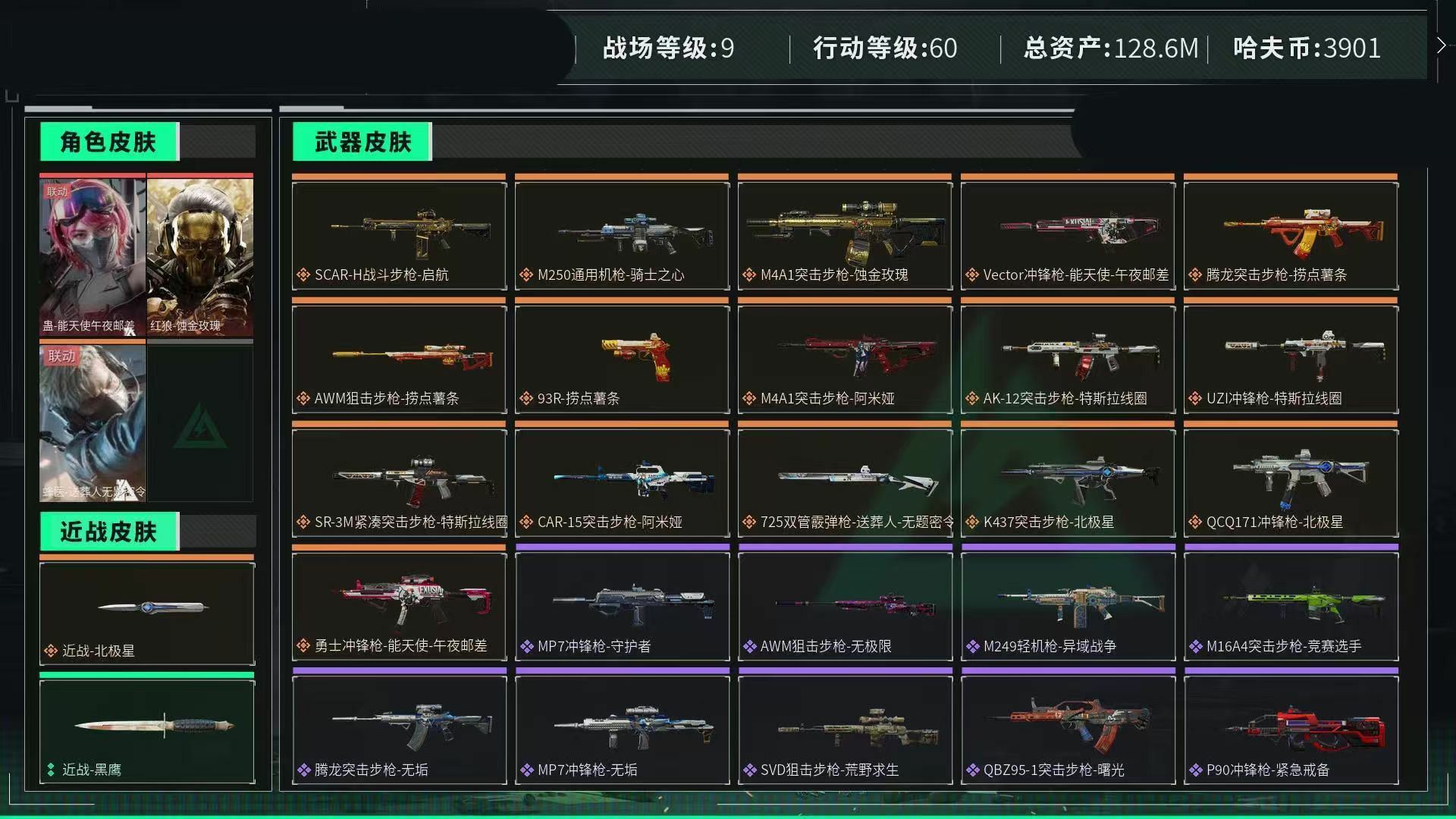 【云游堂】 汤24676总资产128M,哈夫币3901,近战-北极星,红狼-蚀金玫瑰/蛊-能天使午夜邮差/蜂医-送葬人无题密令,枪皮数量120,战场等级:9 无军衔,行动等级:60 铂金,角色皮肤数量3,安全箱等时效性道具请【个人信息】战场等级:9 无军衔,行动等级:60 铂金【哈夫币】3901【总资产】128M【货币】323三角币/4曼德尔币/0三角券【安全箱】基础安全箱2(1x2)/进阶安全箱4(2x2)/S6高级安全箱6(2x3)【通行证】烽火地带限定版【特勤处】制药台Lv.3/工作台Lv.3/仓库Lv.7/防具台Lv.3/训练中心Lv.6/靶场Lv.5/技术中心Lv.3/指挥中心Lv.5/潜水中心Lv.1/收藏室Lv.1【角色皮肤】蛊-能天使午夜邮差/红狼-蚀金玫瑰/蜂医-送葬人无题密令/【已拥有捆绑包】北极星捆绑包/捞点薯条捆绑包/特斯拉线圈捆绑包/【近战皮肤】近战-黑鹰/近战-北极星/【步枪皮肤】M4A1突击步枪-蚀金玫瑰/QBZ95-1突击步枪-曙光/SG552突击步枪-深海恐惧/K437突击步枪-北极星/AS Val突击步枪-典狱官/腾龙突击步枪-无垢/M16A4突击步枪-竞赛选手/SR-3M紧凑突击步枪-荒野求生/CAR-15突击步枪-阿米娅/M4A1突击步枪-阿米娅/腾龙突击步枪-捞点薯条/AK-12突击步枪-特斯拉线圈/SR-3M紧凑突击步枪-特斯拉线圈/SCAR-H战斗步枪-启航/【冲锋枪皮肤】UZI冲锋枪-特斯拉线圈/Vector冲锋枪-阿萨拉文明/MP5冲锋枪-深海恐惧/QCQ171冲锋枪-北极星/MP7冲锋枪-无垢/勇士冲锋枪-能天使-午夜邮差/Vector冲锋枪-能天使-午夜邮差/P90冲锋枪-紧急戒备/MP7冲锋枪-守护者/勇士冲锋枪-工业狂潮/MP5冲锋枪-战术竞备/【霰弹枪皮肤】725双管霰弹枪-送葬人-无题密令/【轻机枪皮肤】PKM通用机枪-荒野求生/QJB201轻机枪-OldHabits/M249轻机枪-异域战争/M250通用机枪-骑士之心/【精准射手步枪皮肤】PSG-1射手步枪-无垢/【狙击步枪皮肤】M700狙击步枪-蝮蛇/SV-98狙击步枪-林中猎手/SVD狙击步枪-荒野求生/AWM狙击步枪-捞点薯条/【手枪皮肤】93R-捞点薯条/【挂饰】肘击王(A)/麦小鼠/火箭玫瑰/牛角威龙/诡影狙击兵/诡影喷火兵/挂饰-启程/挂饰-水墨云图/挂饰-蚀金玫瑰/挂饰-北极星/挂饰-晶石幻想/挂饰-阿米娅/挂饰-来点薯条/挂饰-能天使/挂饰-特斯拉线圈/紧急会议/【载具】M1A4坦克-烈焰/(典藏皮肤颜色请以典藏展示为准,安全箱等时效性道具请以游戏内数据为准) 以游戏内数据为准;详情请看图