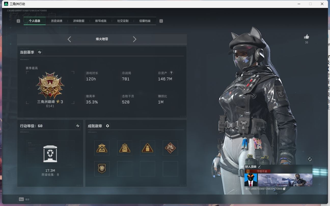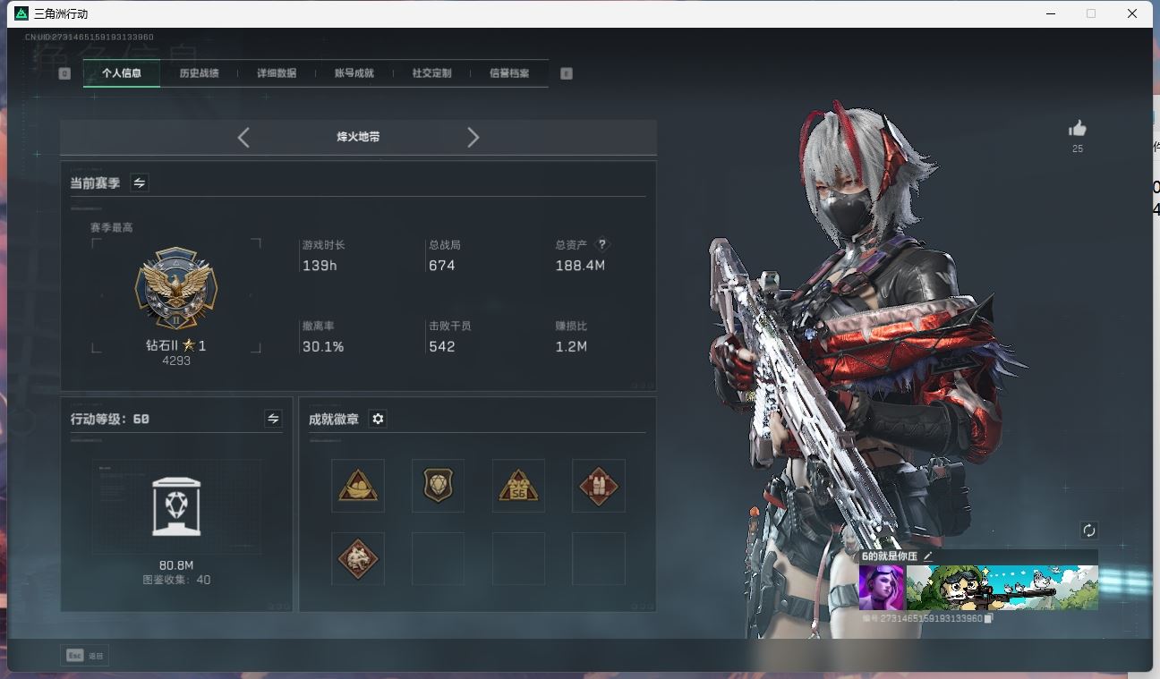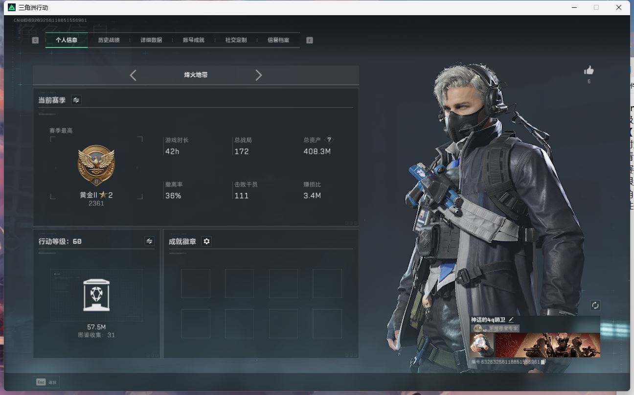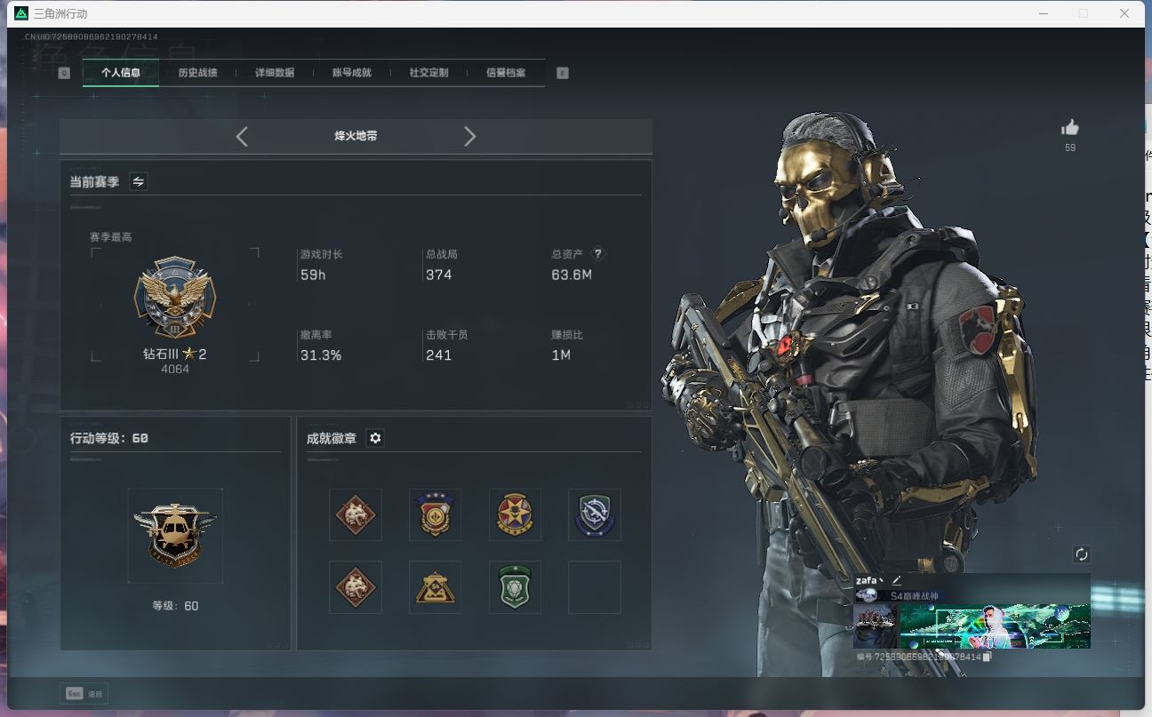 【云游堂】 hmcAK024890【包人脸】行动等级:60黄金,总资产199.8m哈夫币 【呛皮:联动 勇士冲锋枪-能天使-午夜邮差】 【近战:黑鹰】,安全箱等时效性道具请以游戏内数据为准:详情请看图----截图展示段位不代实际段位,赛季更新等不可抗拒因素发生变化、时限道具不保证所剩时间、标题未写送三角币默认不送】【主播担保+安全至上+性价比 买号卖号只选金牌商家一左友】