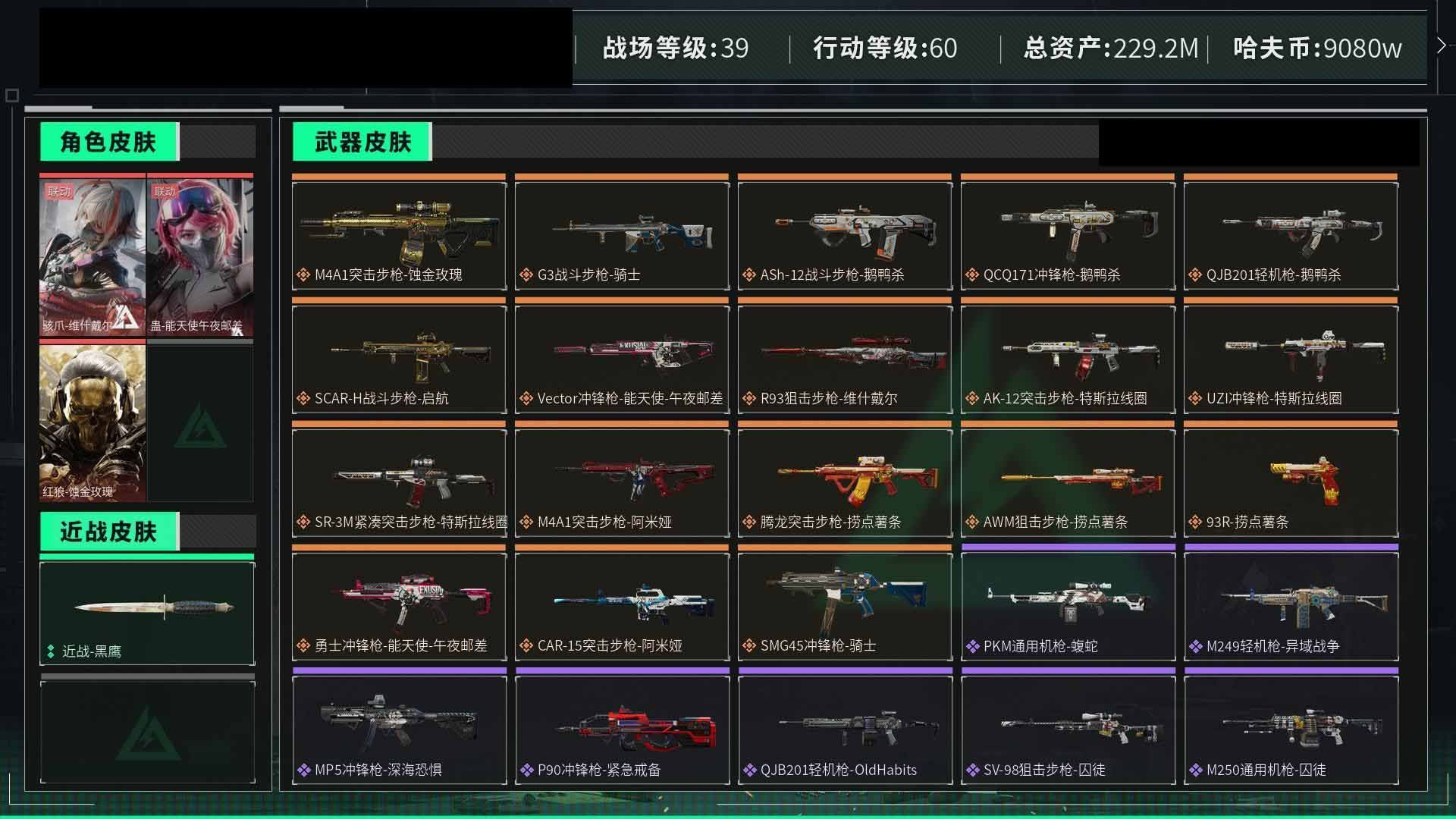 【云游堂】 黑2928001总资产229M,哈夫币9080w,枪皮数量119,战场等级:39 军士长,行动等级:60 铂金,角色皮肤数量3,骇爪-维什戴尔/蛊-能天使午夜邮差/红狼【个人信息】战场等级:39 军士长,行动等级:60 铂金【哈夫币】9080w【总资产】229M【货币】2三角币/0曼德尔币/0三角券【安全箱】基础安全箱2(1x2)/进阶安全箱4(2x2)【通行证】通行证免费版【特勤处】制药台Lv.3/工作台Lv.3/仓库Lv.8/防具台Lv.3/训练中心Lv.6/靶场Lv.4/技术中心Lv.3/指挥中心Lv.5/潜水中心Lv.1/收藏室Lv.0【角色皮肤】骇爪-维什戴尔/蛊-能天使午夜邮差/红狼-蚀金玫瑰/【已拥有捆绑包】捞点薯条捆绑包/特斯拉线圈捆绑包/【近战皮肤】近战-黑鹰/【步枪皮肤】M4A1突击步枪-蚀金玫瑰/AUG突击步枪-蝮蛇/SCAR-H战斗步枪-猎鳄行动/SG552突击步枪-深海恐惧/AKM突击步枪-林中猎手/PTR-32突击步枪-英雄/M16A4突击步枪-竞赛选手/CAR-15突击步枪-阿米娅/M4A1突击步枪-阿米娅/腾龙突击步枪-捞点薯条/AK-12突击步枪-特斯拉线圈/SR-3M紧凑突击步枪-特斯拉线圈/PTR-32突击步枪-OldHabits/G3战斗步枪-骑士/ASh-12战斗步枪-鹅鸭杀/SCAR-H战斗步枪-启航/SR-3M紧凑突击步枪-战术竞备/【冲锋枪皮肤】UZI冲锋枪-特斯拉线圈/Vector冲锋枪-阿萨拉文明/MP5冲锋枪-深海恐惧/勇士冲锋枪-深海恐惧/SMG45冲锋枪-骑士/勇士冲锋枪-能天使-午夜邮差/Vector冲锋枪-能天使-午夜邮差/P90冲锋枪-紧急戒备/勇士冲锋枪-工业狂潮/QCQ171冲锋枪-鹅鸭杀/【霰弹枪皮肤】M1014霰弹枪-林中猎手/【轻机枪皮肤】PKM通用机枪-蝮蛇/M250通用机枪-囚徒/QJB201轻机枪-OldHabits/M249轻机枪-异域战争/QJB201轻机枪-鹅鸭杀/【狙击步枪皮肤】SV-98狙击步枪-囚徒/R93狙击步枪-维什戴尔/SV-98狙击步枪-林中猎手/AWM狙击步枪-捞点薯条/【手枪皮肤】沙漠之鹰-曙光/93R-捞点薯条/【挂饰】挂饰-枪匠/诡影狙击兵/诡影喷火兵/挂饰-维什戴尔/挂饰-大白鹅/挂饰-启程/挂饰-蚀金玫瑰/演出导演/重装记者/挂饰-彩蛋/乐队纪念/阿萨拉霰弹兵/阿萨拉狙击兵/挂饰-阿米娅/挂饰-来点薯条/挂饰-能天使/挂饰-特斯拉线圈/阿萨拉徽章/紧急会议/(典藏皮肤颜色请以典藏展示为准,安全箱等时效性道具请以游戏内数据为准)