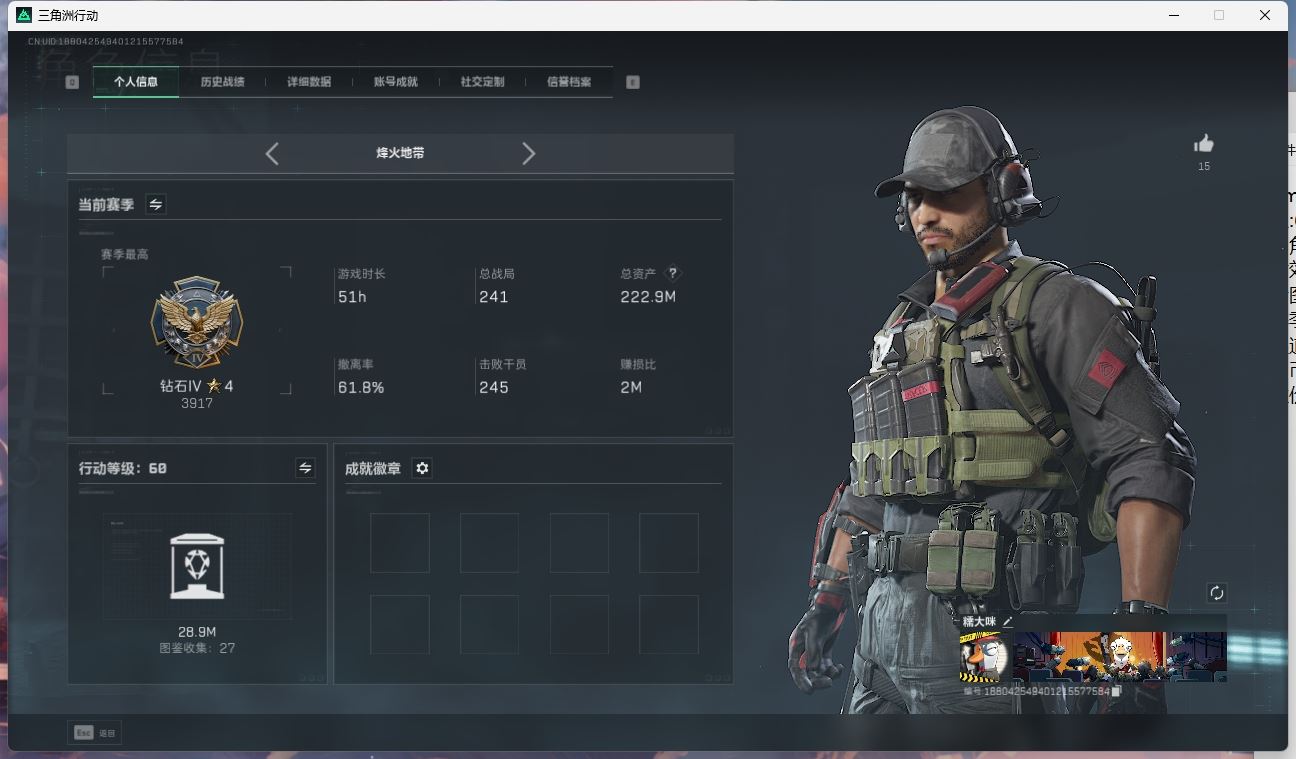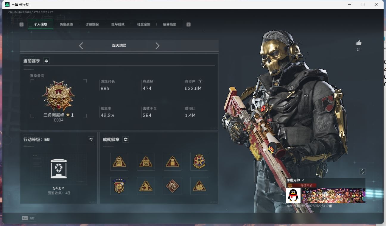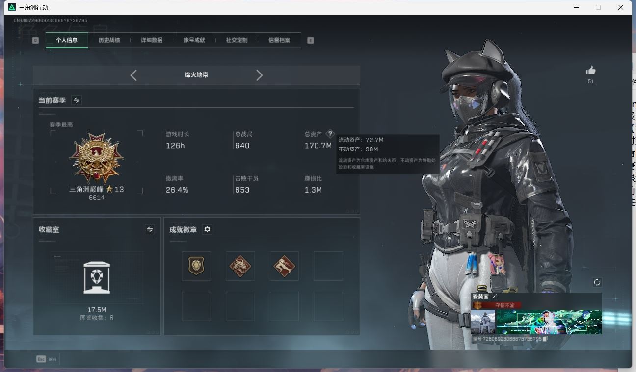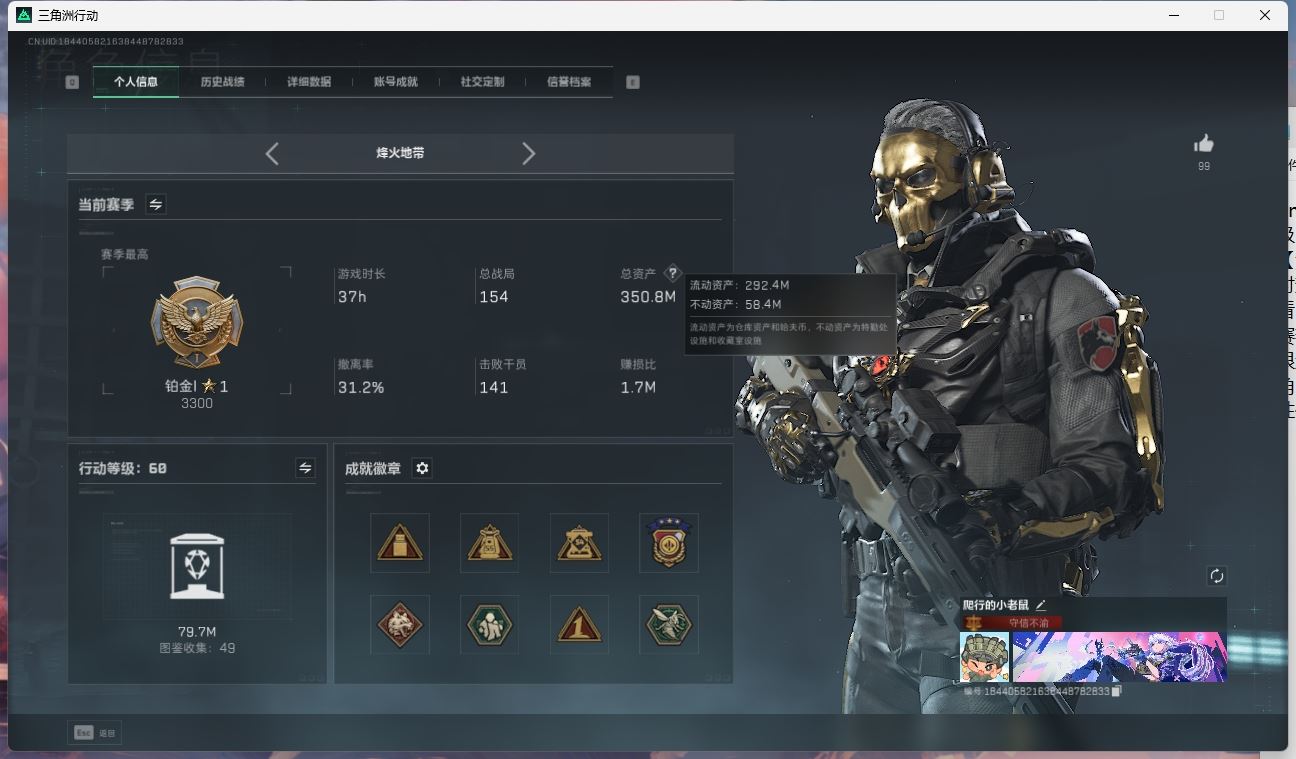 【云游堂】 hmc AK025209【亮点解析 s6赛季3*3】行动等级:60黑鹰,总资产350.7m哈夫币 【呛皮:联动 M4A1突击步枪-阿米娅 ASh-12战斗步枪-鹅鸭杀 联动 CAR-15突击步枪-阿米娅 UZ1冲锋枪-特斯拉线园 SR-3M紧凑突击步枪-特斯拉线围 联动 勇士冲锋枪-能天使-午夜邮差 0C0171冲锋枪-鹅鸭杀】【角色皮肤:蛊-午夜邮差】【近战:黑鹰】----安全箱等时效性道具请以游戏内数据为准:详情请看图----截图展示段位不代实际段位,赛季更新等不可抗拒因素发生变化、时限道具不保证所剩时间、标题未写送三角币默认不送】【主播担保+安全至上+性价比 买号卖号只选金牌商家一左友】