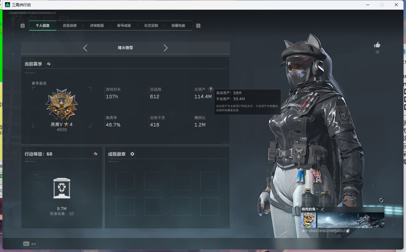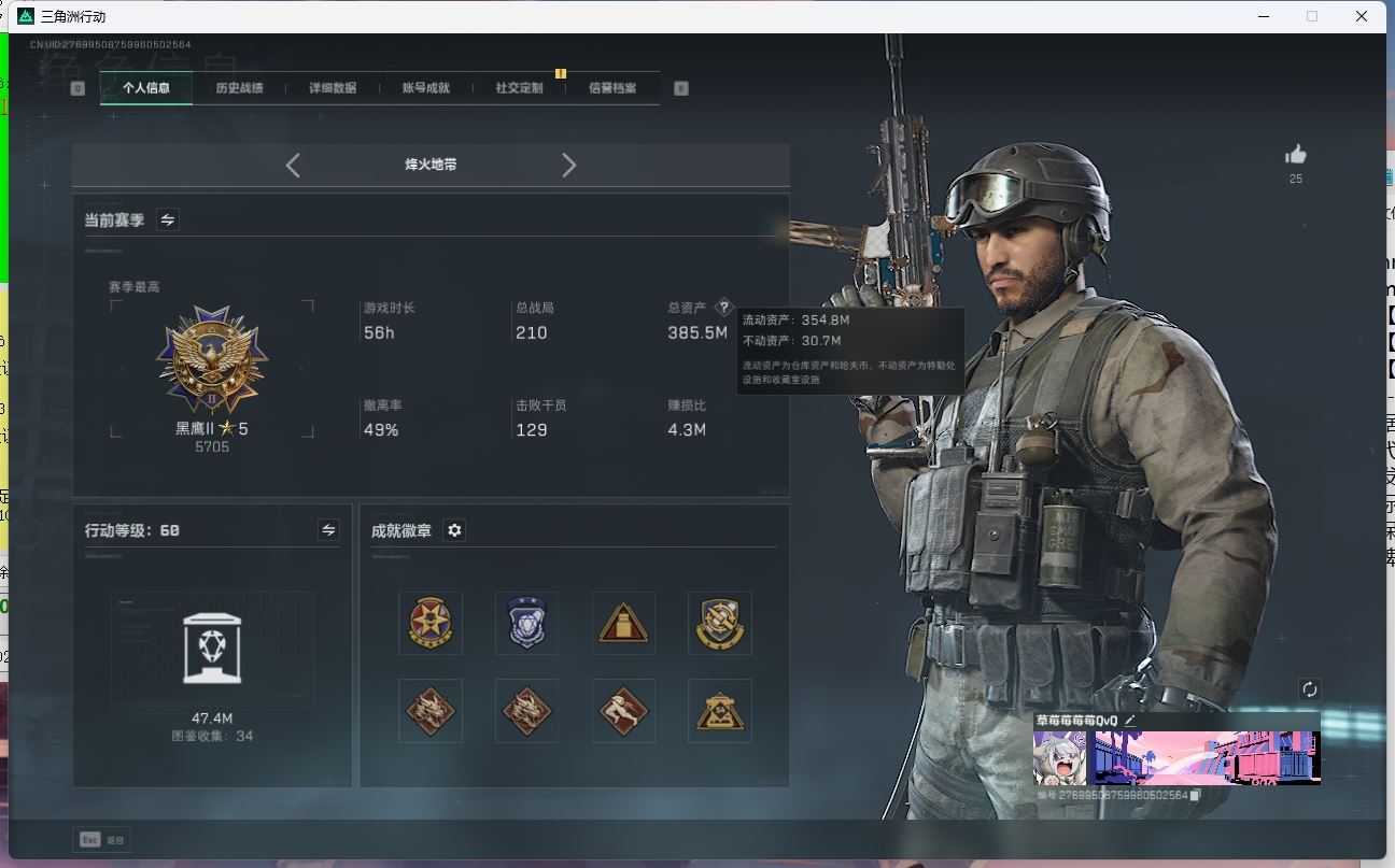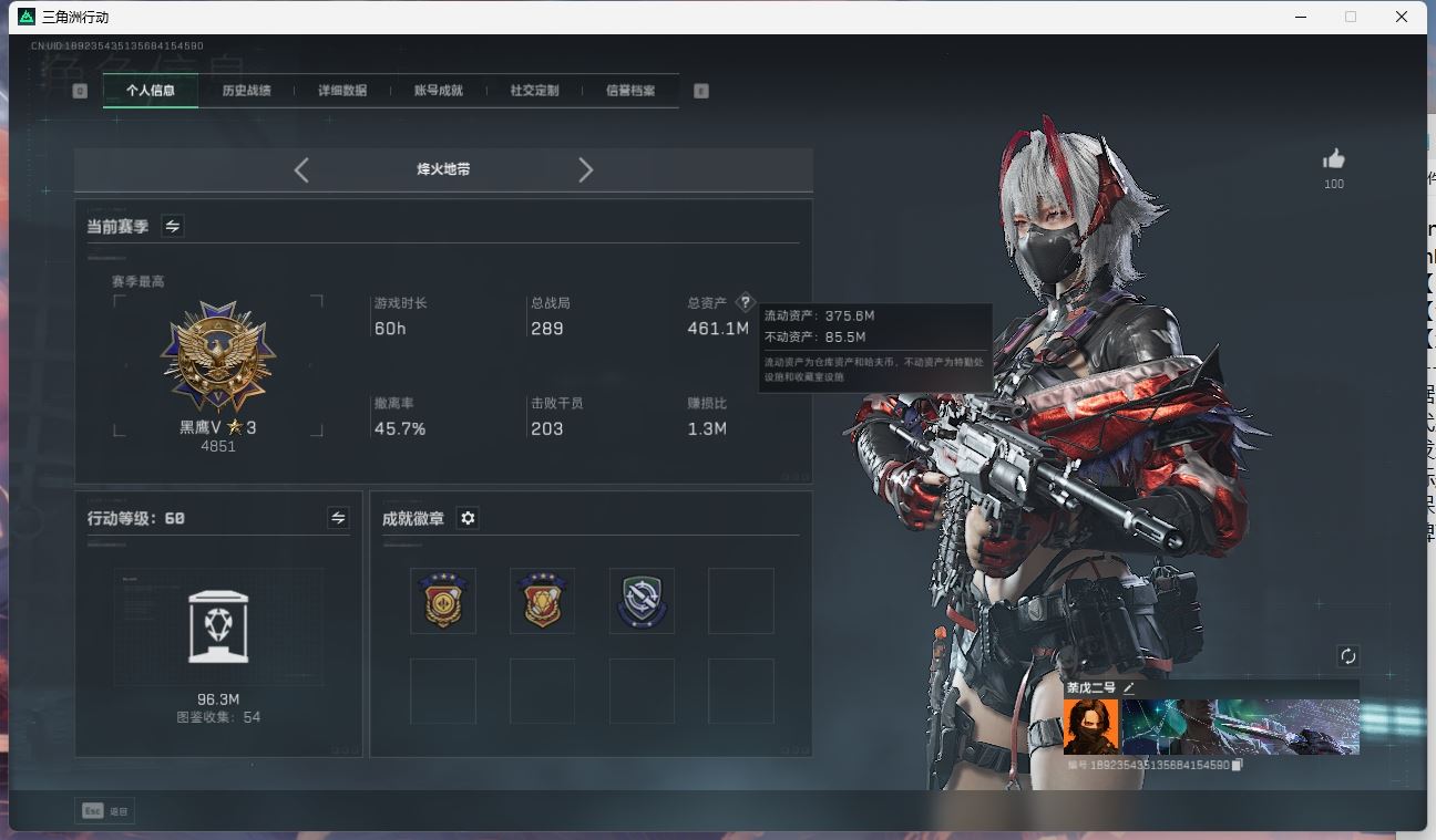 【云游堂】 hmc AK025372 行动等级:60黑鹰,总资产385.5m哈夫币 【呛皮:联动 M4A1突击步枪-阿米娅 AK-12突击步枪-特斯拉线 SCAR-H战斗步枪-启航 CAR-15突击步枪-黑鹰坠落 联动 Vector冲锋枪-能天使UZI冲锋枪-特斯拉线圈 SMG-45冲锋枪-骑士 联动 勇士冲锋枪-能天使-午夜邮差 联动 725双管假弹枪-送葬人-无题密令 联动 复合弓-黑-天际线】 【角色皮肤:红狼-黑鹰坠落 无名-夜鹰 蜂医-送葬人无题密令】【近战:黑鹰】----安全箱等时效性道具请以游戏内数据为准:详情请看图----截图展示段位不代实际段位,赛季更新等不可抗拒因素发生变化、时限道具不保证所剩时间、标题未写送三角券默认不送】【主播担保+安全至上+性价比 买号卖号只选金牌商家一左友】