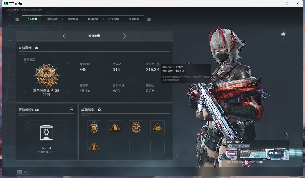 【云游堂】 hmcAK025180【可二次】【亮点解析 4红皮 北极星 】行动等级:57钻石,总资产11.5m哈夫币 【呛皮:联动 M4A1突击步枪-阿米娅 AK-12突击步枪-特斯拉线圈 SCAR-H战斗步枪-水墨云图 G3战斗步枪-骑士 联动 CAR-15突击步枪-阿米娅 腾龙突击步枪-捞点警条 K437突击步枪-北极星 联动 Vector冲锋枪-能天使 UZI冲锋枪-特斯拉线圈 SR-3M紧凑突击步枪-特斯拉线圈 联动 勇士冲锋枪-能天使-午夜邮差 联动 725双管假弹枪-送葬人-无题密令 联动 R93狙击步枪-维什戴尔 93R-捞点薯条】 【角色皮肤:红狼-蚀金玫瑰 蛊-午夜邮差 骇爪-维什戴尔- 水墨云图 】【近战:北极星 黑鹰 】,安全箱等时效性道具请以游戏内数据为准:详情请看图----截图展示段位不代实际段位,赛季更新等不可抗拒因素发生变化、时限道具不保证所剩时间、标题未写送三角币默认不送】【主播担保+安全至上+性价比 买号卖号只选金牌商家一左友】