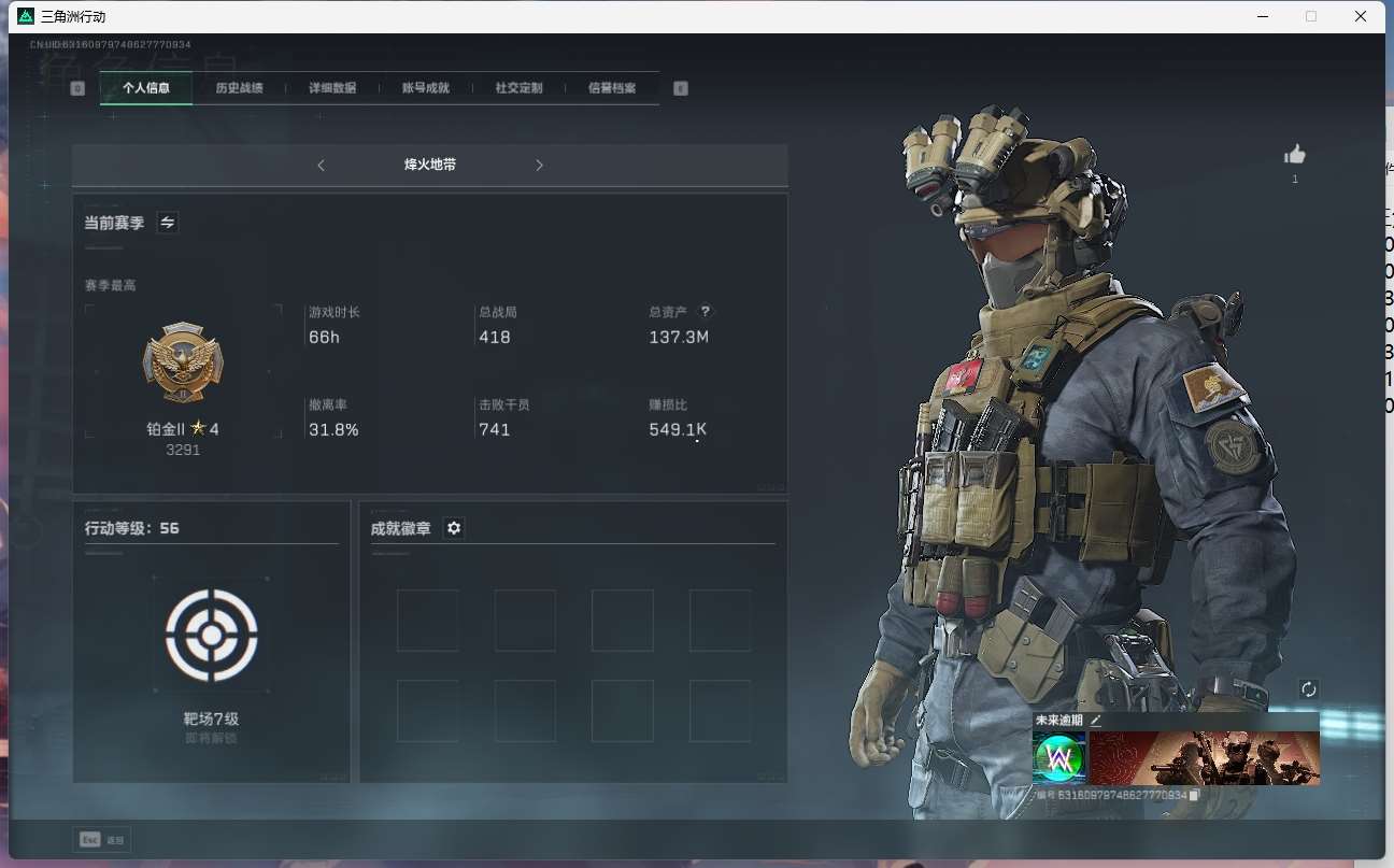 【云游堂】 hmcak023342【包人脸】行动等级:56铂金,总资产137.3m哈夫币 【呛皮:联动 m4a1突击步呛-阿米娅 ak-12突击步呛-特斯拉线圈 腾龙突击步呛-捞点著条 联动 vector冲锋呛-能天使-午夜邮差 sr-3紧凑突击步呛-特斯拉线圈 联动 725双管假弹呛-送葬人-无题密令 awm狙击步呛-捞点著条】 【角色皮肤:蜂医-送葬人】【近战:黑鹰】,安全箱等时效性道具请以游戏内数据为准:详情请看图----截图展示段位不代实际段位,赛季更新等不可抗拒因素发生变化、时限道具不保证所剩时间、标题未写送点卷默认不送】【主播担保+安全至上+性价比 买号卖号只选金牌商家一左友】