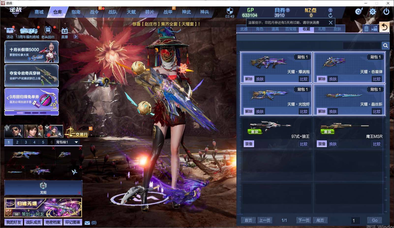 【云游堂】 【可二次实名】E3953/可二次/电信【秘境基础增伤699.2】【天耀十件套】狼王套/极寒冰神/圣裁者-烈日/火神暴君/烈焰战神/魂断魔殇/奇变步狙/天王/湛蓝刺针枪-弹指一纪/甜心萌兔双枪/能源之影LV3/极夜星辉/幽毒蚀骨/间谍人偶左尔格/绀蓝暗域机锋巨锤/绀蓝暗域之矛/绀蓝暗域阔刃/灭世骨刃-王权/浩海龙腾战盔(半装甲形态)/冰风火凰甲/翠藤龙角/量子魔盔/熊猫背包/蚀光耀翼-幽紫/晶焰之羽/阿斯特例亚之心/灵蝶之戒/超梦晶体之戒/霜学之晶/动天使/地狱烈焰犬/糜鹿/泳池派对-欧泊/灵踪-五灵幻兽/泳池派对-艾蓓/玄耀灵汐/赤炎钢虎-斩影/海拉-新纪元/小达古/智械帝国-机械鲲/星海使者-希亚/暗夜翼龙/英雄游侠/英雄铁卫-爽柠/英雄强盾/锋影强能臂铠/三卡永久/1稀释精华/6史诗碎片/可排位/详情看图