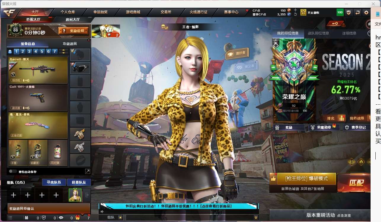 【云游堂】 【可二次实名】r40474 可二次西部四川一区可排位vip6【146v】【传说星骇】【m200幻神+幻神荣耀世冠白鲨2023+幻神星火小队+幻神ag17冠军+幻神音效卡】【柯尔特荣耀世冠白鲨2023+3竞技柯尔特+cop雷霆王者+cop堕天神】【炽芒蝶刃】【星神】【裁决+裁决流光秘银+裁决音效卡】【传说辉光】【堕天神套】【白虎电玩蓝兔】【觉醒王者火魄】【白虎暗星+qbz荣耀世冠白鲨+金色蔷薇量子蔷薇皮肤+火麒麟2018+毁灭cfs2020+毁灭sv冠军+毁灭冠军之怒+雷神冠军之魄+黑骑士地狱火】【天罚音效卡+雷神音效卡+极光音效卡+黑骑士音效卡】【云悠悠+机械姬+研+隼+满配蛇隐宗+王者葵貂蝉+王者迷迭香+满配云海玲珑+灵动武士+职业选手】【法玛斯天戎+天罚+g36幻影+金色蔷薇】【6盘龙+5烈龙+芭蕾特零水下丽影】【朱雀蛇隐宗+cop旗袍】【暴君乱世max+寒冰征服者max】【金刚伞】【1911大黄蜂】【手斧镜】【超级护目镜+超级背包+炫彩背包】【a背包扩展卷+b背包套装手雷包+a背包套装手雷包】【工具钳+手雷包】各种道具详情看截图、低价出售找回包赔、截图展示段位不代表实际段位,如赛季更新等不可抗拒因素发生变化、时限道具不保证所剩时间、标题未写送点卷默认不送【卖号买号首选亿梦】