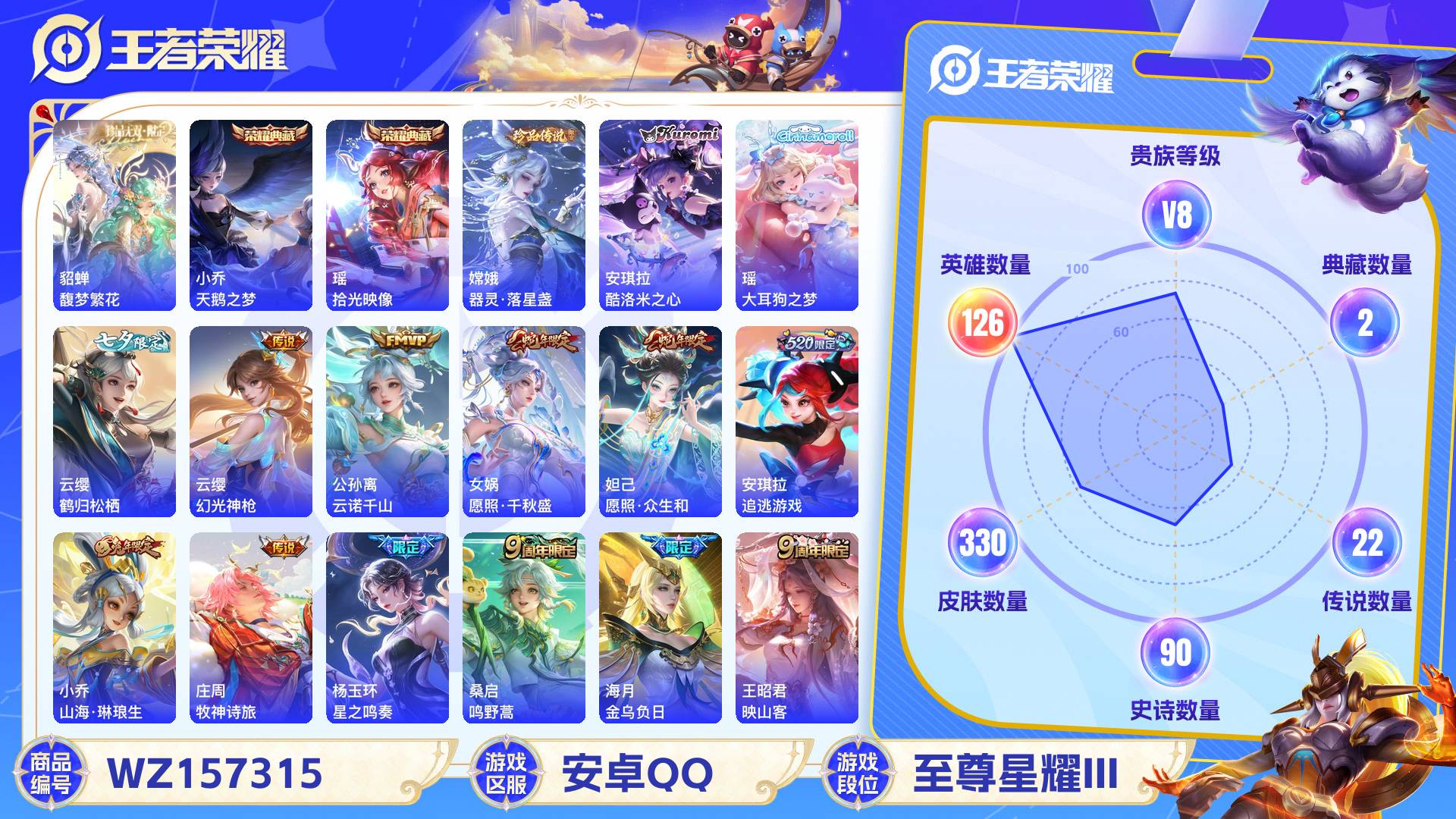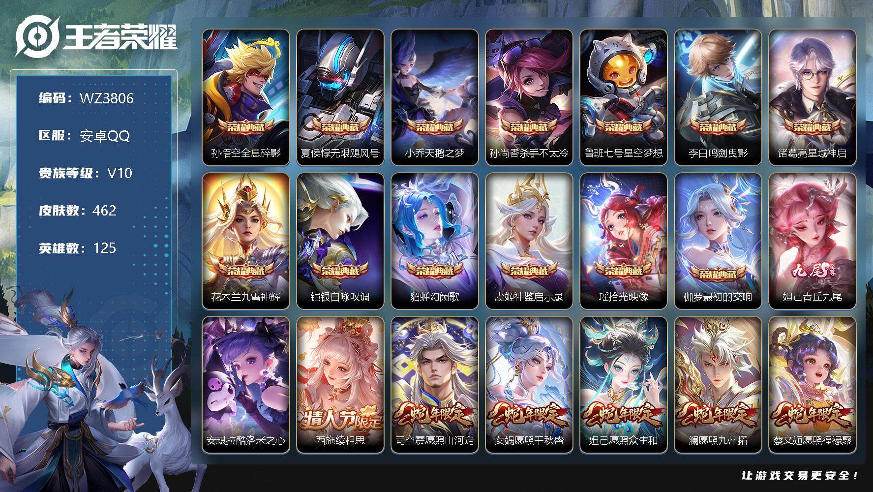 【云游堂】 【可包人脸】ljh【找回包赔】ak010732 安卓qq 营地id480528073 【v8】 【 122英雄 335皮肤 】 【典藏3 传说29 史诗112 限定128 星传说4】 【荣耀典藏 瑶 -拾光映像 孙悟空 -全息碎影 李白 -鸣剑·曳影】 【星传说 零号:雷霆 玉鸾吟 幽冥之眼 金色仲夏夜】 【传说皮肤 云缨 -幻光神呛 孙尚香 -异界灵契 达摩 -黄金狮子座 曜 -山海·苍雷引 后羿 -无尽星芒 李白 -诗剑行 铠 -冥王哈迪斯 虞姬 -云霓雀翎 狄仁杰 -超时空战士 孙尚香 -乘龙·问璇玑 宫本武藏 -惊梅引 桑启 -鸣野蒿 狄仁杰 -神器·狴犴令 云缨 -鹤归松栖 马可波罗 -妄想实况 虞姬 -启明星使 李元芳 -飞鸢探春 宫本武藏 -地狱之眼 朵莉亚 -心动手记 李白 -凤求凰 诸葛亮 -时雨天司 马可波罗 -深海之息 孙悟空 -齐天大圣 孙悟空 -零号·赤焰 澜 -逐花归海 娜可露露 -前尘镜 赵云 -乘龙·铭钟鼎 曜 -李逍遥 镜 -炽阳神光】 【史诗皮肤 弈星 -万物之道 吕布 -圣诞狂欢 橘右京 -修罗 甄姬 -冰雪圆舞曲 项羽 -苍穹之光 刘禅 -绅士熊喵 百里守约 -特工魅影 吕布 -末日机甲 兰陵王 -暗隐猎兽者 韩信 -白龙吟 阿轲 -节奏热浪 沈梦溪 -月团寄思 宫本武藏 -鬼剑武藏 蒙犽 -龙鼓争鸣 鲁班七号 -电玩小子 墨子 -金属风暴 刘邦 -德古拉伯爵 廉颇 -地狱岩魂 张良 -千筹问战 铠 -曙光守护者 澜 -赏金猎手 嬴政 -暗夜贵公子 曹操 -幽灵船长 夏侯惇 -乘风破浪 墨子 -龙骑士 孙尚香 -蔷薇恋人 元歌 -无心 娜可露露 -晚萤 孙尚香 -时之恋人 程咬金 -功夫厨神 妲己 -女仆咖啡 不知火舞 -魅语 蔡文姬 -舞动绿茵 大乔 -白蛇 嬴政 -摇滚巨星 貂蝉 -圣诞恋歌 诸葛亮 -黄金分割率 安琪拉 -心灵骇客 李元芳 -逐浪之夏 亚瑟 -心灵战警 孙尚香 -水果甜心 伽罗 -箭羽风息 夏洛特 -永昼 孙策 -猫狗日记 刘禅 -天才门将 小乔 -缤纷独角兽 雅典娜 -冰冠公主 高渐离 -玩趣恶龙 李白 -千年之狐 露娜 -紫霞仙子 白起 -星夜王子 刘禅 -电玩·爆裂旋风 赵怀真 -鹤归松栖 阿古朵 -江河有灵 蒙犽 -百解令 黄忠 -怒海争锋 海诺 -心动手记 芈月 -浮光幕影 蔡文姬 -夏日便利店 蒙犽 -顽岩魄 廉颇 -撼地雄心 亚连 -破空之剑 李白 -谪仙醉月 马可波罗 -星界特工】 -----更多炫彩背包/光效/名片/武器具体看图!截图展示段位不代实际段位,赛季更新等不可抗拒因素发生变化、时限道具不保证所剩时间、标题未写送点卷默认不送】【主播担保+安全至上+性价比 买号卖号只选金牌商家一左友】
