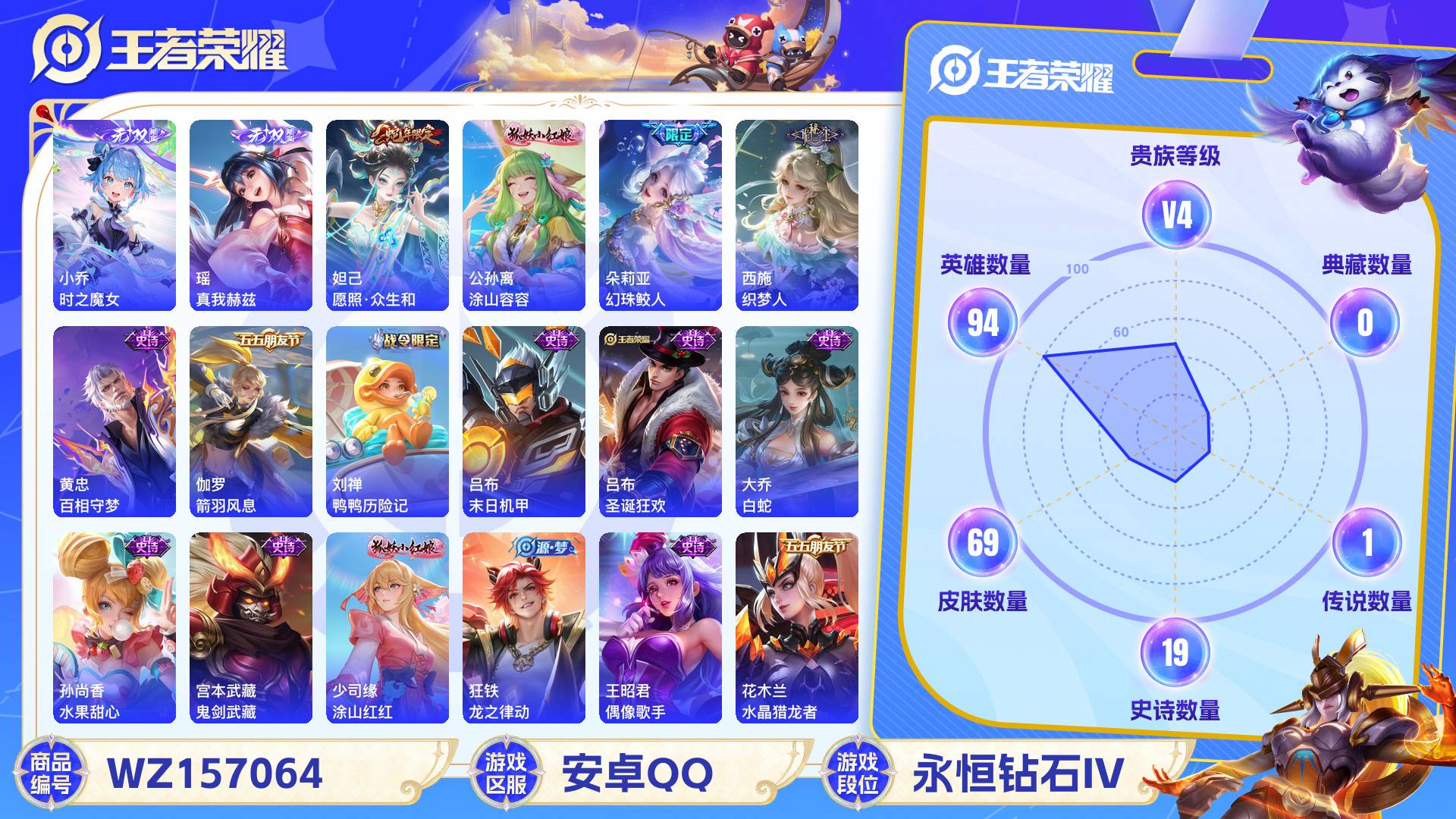 【云游堂】 安卓qq/最强王者/94皮肤/124英雄/0典藏/1珍品无双/1无双/5珍品传说/9传说/32史诗/8稀有英雄