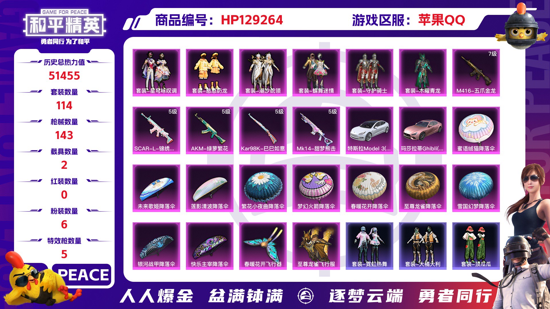 【云游堂】 2191107-苹果qq历史总热力值:51455粉装数量:6特效呛数量:5载具数量:2王牌印记:7历史最高段位:卓越王牌7星套装数量:114时装数量:446呛械数量:143战备数量:107装备数量:167载具:特斯拉model3(珍珠白)玛莎拉蒂ghibli(粉)时装:套装-守护骑士套装-憨憨奶龙套装-星穹咏叹调套装-木曜青龙套装-潮汐统领套装-蝶舞迷情套装-ss10特训套装-ss11特训套装-ss12特训套装-ss13特训套装-ss14特训套装-ss17特训套装-ss18特训套装-ss19特训套装-ss25特训套装-ss26特训套装-ss27特训套装-ss29特训套装-ss30特训套装-ss31特训套装-ss32特训套装-ss33特训套装-ss5特训套装-ss6特训套装-ss7特训套装-ss8特训套装-ss9特训套装-伏击者套装-传奇侦探套装-冰川特警套装-凛冬战士套装-北国孤狼套装-原初圣火套装-圣诞大吉套装-夏日音浪套装-大橘大利套装-太极红客套装-奇迹天团套装-安第斯皇冠套装-巳巳如意套装-幻影武者套装-快闪甜心套装-惊鸿侠骨套装-战地督导套装-战术大师套装-拳皇97八神庵套装-日照花林套装-春光漫游套装-晨曦薄雾套装-智谋强哥套装-机械征服者套装-机械英豪套装-极速红龙套装-格斗专家套装-沙漠兵团套装-淡雅花蕊套装-深蓝冒险家套装-深蓝色名流套装-湖蓝色名流套装-滨海厨神套装-火舞潮人套装-灰色格斗者套装-炫蓝之夏套装-炽焰拳师套装-热血青春套装-熔岩使者套装-燕燕于飞套装-牛气满满套装-特战装甲套装-特训学院套装-玲珑飞花套装-甜蜜告白套装-甜蜜熊情侣套装-疯狂小兔子套装-神秘领域套装-空岛之星套装-空投萌叽套装-竞技勇士朋克套装-竞技名士套装-竞技达人朋克套装-粉恋花套装-粉红小猪套装-精密机核套装-糖糖葫芦套装-紫幽梦套装-红色运动套装-绮丽涂鸦套装-缤纷果语套装-萌黄之夏套装-蓝冰羽套装-蓝色运动套装-蔷薇魔法师套装-街头风暴套装-跃动心情套装-迷域探索者套装-逆风勇士套装-酷萌兔限定套装-锦衣飞扬套装-长空猛禽套装-雪山征服者套装-雪山精英套装-霓虹热舞套装-霓虹街区套装-青团波波套装-青涩时光套装-顶瓜瓜套装-骑行爱好者套装-魅力单车套装-鱼渊荷华套装-黄色运动套装-黎明保卫者套装-黑色伏地魔套装-龙的传人角色-许七安呛械:akm-绿萝繁花(5级)m416-五爪金龙(7级)scar-l-锦绣绵绵(5级)ac-val-快闪甜心akm-夜灯akm-彩虹符号akm-春暖花开akm-灼热熔岩akm-破晓战魂akm-霓虹街区akm-龙的传人aug-魔法学院g36c-星穹咏叹调groza-春暖花开groza-银河战甲m16a4-幻世战舞者m16a4-机械英豪m16a4-魔法学院m416-夜灯m416-糯团青竹m416-红色方程式m416-蓝色火焰m762-天降萌叽m762-拳皇97qbz-原初圣火qbz-彩虹符号qbz-银河战甲scar-l-炫彩节奏scar-l-红色方程式scar-l-银河战甲蜜獾-糖糖葫芦kar98k-巳巳如意(5级)kar98k-勇闯险境kar98k-彩虹符号kar98k-红色方程式m200-惊鸿侠骨m24-冰封烈焰win94-机械英豪mk14-甜梦熊击(5级)m417-惊鸿侠骨m417-玩趣呆呆mk20-h-快闪甜心mk20-h-糖糖葫芦mk20-h-莲影清波mini14-原初圣火mini14-春暖花开mini14-梦幻火箭mini14-炫彩节奏mini14-耀粉歌者mini14-银河战甲mk14-紫幽梦sks-勇闯险境sks-夜灯sks-未来歌姬vss-华贵君王aks-74u-粉粉喵呜p90-巳巳如意p90-快闪甜心ump45-春暖花开ump45-生命誓言ump45-糖糖葫芦uzi-啾咪啾咪uzi-魔法学院vect-燕燕于飞vect-银河战甲汤姆逊-勇闯险境汤姆逊-天降萌叽野牛-机械英豪野牛-燕燕于飞dbs-彩虹符号s12k-机械英豪s12k-玩趣呆呆s1897-勇闯险境s1897-春暖花开s1897-紫幽梦s686-冰封烈焰s686-魔法学院spas-12-燕燕于飞dp-28-原初圣火dp-28-清新柠檬m249-彩虹符号m249-拳皇97m249-莲影清波mg3-惊鸿侠骨mg3-霓彩脉冲pkm-紫幽梦p18c-原初圣火p18c-糖糖葫芦p1911-冰封烈焰p92-拳皇97p92-紫幽梦沙墨之鹦-快闪甜心短管霰弹-圣域龙灵蝎式手呛-燕燕于飞蝎式手呛-闲梦青缨平底锅-五爪金龙平底锅-光之冒险平底锅-冰封烈焰平底锅-勇闯险境平底锅-原初圣火平底锅-属我最6平底锅-快闪甜心平底锅-惊鸿侠骨平底锅-拳皇97平底锅-机械英豪平底锅-空岛之星平底锅-糖糖葫芦平底锅-紫幽梦平底锅-缤纷糖果平底锅-许七安平底锅-超新星撬棍-传奇侦探十子怒-异域银装十子怒-燕燕于飞燃烧瓶-甜梦桃焰爆炸猎弓-惊鸿侠骨破片手留单-呆爆全场破片手留单-海盐豹豹战备:快乐主宰降落伞春暖花开降落伞未来歌姬降落伞梦幻火箭降落伞繁花小夜曲降落伞至尊龙雀降落伞莲影清波降落伞蜜语绒猫降落伞银河战甲降落伞雪国幻梦降落伞2023祥云降落伞ss25王牌降落伞ss26王牌降落伞ss30王牌降落伞ss32王牌降落伞ss33王牌降落伞ss6王牌降落伞光子定制降落伞冰封烈焰降落伞勇闯险境降落伞化学天才降落伞原初圣火降落伞寂夜之火降落伞快闪甜心降落伞惊鸿侠骨降落伞折纸暴龙降落伞拳皇97降落伞放飞梦想降落伞月下萌萌兔降落伞机械英豪降落伞沙场雄鹰降落伞游龙飞鱼降落伞燕燕于飞降落伞牛气冲天降落伞电竞之星降落伞白昼之火降落伞空岛之星降落伞糖糖葫芦降落伞紫幽梦降落伞蓝海之火降落伞跑卡漂移降落伞踏青降落伞钢铁雄心降落伞闻鸡启五降落伞霓虹街区降落伞飞行日记降落伞马戏团糖果降落伞春暖花开飞行器至尊龙雀飞行服破刃行动尾迹空岛之星尾迹装备:冰封烈焰头盔(3级)勇闯险境头盔(3级)古堡领主头盔(3级)巳巳如意头盔(3级)快闪甜心头盔(3级)拳皇97头盔(3级)春暖花开头盔(3级)炫蓝之夏头盔(3级)破晓战魂头盔(3级)精灵迷巫头盔(3级)糖糖葫芦头盔(3级)紫幽梦头盔