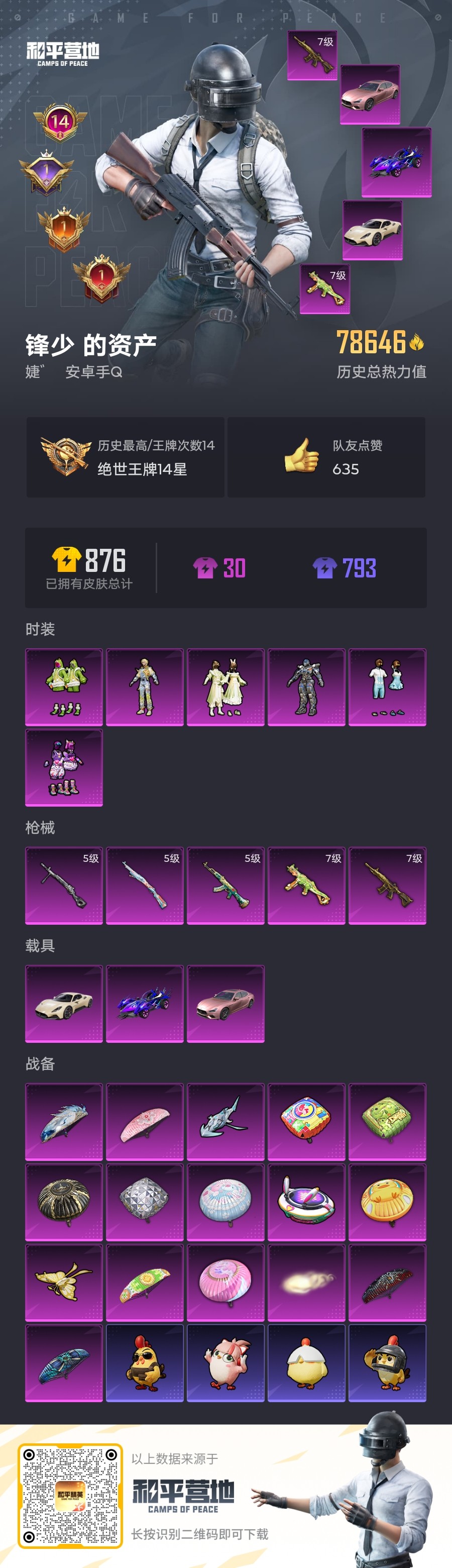 【云游堂】 2170839-安卓qq历史总热力值:110534粉装数量:13特效呛数量:7载具数量:2王牌印记:14历史最高段位:超级王牌11星套装数量:246时装数量:893呛械数量:318战备数量:239装备数量:440载具:路特斯eletre(花绽灰)玛莎拉蒂ghibli(粉)时装:套装-垂柳戏鸭套装-天使彩虹糖套装-沙场疾风套装-海渊国主套装-第五大道套装-繁龙极客套装-莲影清波套装-金丰海韵套装-霁雪冰心套装-音爆索尼克角色-千金淑猫角色-复仇流浪者角色-智耀战神套装-ss14特训套装-ss15特训套装-ss16特训套装-ss17特训套装-ss18特训套装-ss19特训套装-ss20特训套装-ss21特训套装-ss22特训套装-ss23特训套装-ss24特训套装-ss25特训套装-ss26特训套装-ss27特训套装-ss28特训套装-ss29特训套装-ss30特训套装-ss31特训套装-ss32特训套装-ss33特训套装-ss34特训套装-云魄琉璃套装-人气偶像套装-元气之梦套装-元素星魂套装-光之冒险套装-兔兔白日梦套装-六六大吉套装-军械专家套装-冥星暗影套装-冰川特警套装-冰河战士套装-冷焰舞者套装-凌霄紫焰套装-千禧之恋套装-双彩圣灵套装-吉莉礼服套装-和煦暖阳套装-团圆交子套装-圣穹绘梦套装-坚韧舞者套装-夏日音浪套装-夜莺强袭者套装-大橘为重套装-大橘大利套装-天籁歌者套装-奇异狩猎者套装-妙红点点套装-娇憨猪猪套装-完美偶像套装-小熊娃娃套装-尼罗河传说套装-岑岑玉浪套装-巳巳如意套装-幻世战舞者套装-幻彩翩翩套装-幻影武者套装-幻羽潜行套装-幽夜迷踪套装-异域银装套装-异彩先驱套装-快闪甜心套装-恋语绒绒套装-惊鸿侠骨套装-懵萌河马套装-战术大师套装-探宝勇士套装-无暇誓言套装-旭日情侣套装-时空追击者套装-星影赞美诗套装-星渊小夜曲套装-星途旅人套装-春光漫游套装-春日漫步套装-智慧隐士套装-智谋强哥套装-暖心熊熊套装-暗夜傀儡套装-暴风机械师套装-朱霞炽焰套装-极速竞梦套装-极速红龙套装-柠萌假日套装-格斗先锋套装-棉花软糖套装-森林游猎者套装-橘黑制服套装-沙漠兵团套装-沙漠毒蛇套装-治愈之星套装-活力之心套装-派对舞王套装-浑天鲲鹏套装-浪漫假日套装-海盐绵绵冰套装-涂山之恋套装-深海小丑鱼套装-深海梦境套装-深蓝色名流套装-湖蓝色名流套装-滨海假日套装-漫游都市套装-潮流游乐家套装-灰色格斗者套装-灼焰舞者套装-灿烂千阳套装-炫蓝之夏套装-热血青春套装-焰鹰斗篷套装-燃烧卡路里套装-燕燕于飞套装-牛气冲天套装-牛气满满套装-特战装甲套装-特殊使命套装-特种颜团子套装-特训学院套装-猎梦纪元套装-猎鹰套装-猛禽套装-玉兔迎春套装-王牌投手套装-王牌教练套装-瑞龙福将套装-甜心亚梦套装-甜梦熊熊套装-甜蜜熊情侣套装-田园牧歌套装-电音精灵套装-疯狂小兔子套装-白熊同盟套装-白色伏地魔套装-破蛋小黄鸡套装-神气柴柴套装-神秘领域套装-神秘黑猫套装-福星高照套装-科技之星套装-空岛之星套装-空投萌叽套装-竞技名士套装-竞技达人朋克套装-童话森林套装-粉恋花套装-粉红小猪套装-糖糖葫芦套装-紫幽梦套装-红熊茄茄套装-红色运动套装-绮丽涂鸦套装-绯格组合套装-缤纷焰火套装-耀眼新星套装-老实芭蕉套装-茉莉之诺套装-荣耀套装-荷畔雨呱套装-莱茵河畔套装-萌趣咩咩套装-萌趣颜团子套装-萌黄之夏套装-萝兰蝴蝶套装-蓝冰羽套装-蓝彩潮人套装-蓝色守护者套装-蓝色运动套装-蓝调潮人套装-薄荷星砂套装-虎虎生威吉莉套装-虚音幻奏套装-蝶变套装-血色贵族套装-街头潮人套装-街头风暴套装-裁决冥王套装-诡谋托雷基亚套装-贵族骑装套装-软萌银虎套装-轻风白浪套装-迎春赐吉套装-都市魅力套装-酒红色名流套装-酷潮明星套装-酸甜橘柚套装-醒狮腾龙套装-野性山猫套装-野性战心套装-金戈铁马套装-金耀舞者套装-铁血战翼套装-锦衣飞扬套装-长空猛禽套装-雏菊兔兔套装-雨林探路者套装-霓虹极客套装-霓虹街区套装-青团波波套装-青年教官套装-青春冒险家套装-青涩时光套装-青玉碎影套装-音速流光套装-顶瓜瓜套装-风行保卫者套装-飞狐塔尔斯套装-飞驰魅影套装-魅力单车套装-鱼渊荷华套装-鹤鸣套装-鹰眼刺客套装-麻辣教官套装-黄色伏地魔套装-黄色名流套装-黄色运动套装-黎明保卫者套装-黑色伏地魔套装-龙的传人套装-龙腾端午套装-龙魂突击队套装-龟仙人玩偶服-懒羊羊玩偶服-美羊羊角色-mark.06角色-光矢逐梦角色-军刀雅典娜角色-拉斐尔角色-摩登魅猫角色-瑰梦爱神角色-绊爱角色-艾克斯奥特曼角色-都市丽猫角色-风玲呛械:m416-风花雪月(4级)scar-l-金蛇镇世(3级)ac-val-乌木金纹ac-val-天降萌叽ac-val-快闪甜心ac-val-甜心亚梦akm-夜灯akm-奇异狩猎者akm-彩虹符号akm-星之彼岸akm-涂鸦街区akm-灼热熔岩akm-生命誓言akm-破晓战魂akm-筑梦精灵akm-萌趣颜团子akm-虎虎生威akm-霓虹街区akm-龙的传人arx-凌霄紫焰aug-天降萌叽aug-异域银装aug-月影灵韵aug-灵符少年aug-甜蜜菠萝aug-耀粉歌者aug-青春冒险家famas-镜域双华g36c-懵萌河马g36c-时空追击者g36c-星穹咏叹调g36c-暗夜玫瑰g36c-炙焰牛王g36c-青丘仙客groza-异彩先驱groza-彩虹符号groza-影袭groza-懵萌河马groza-治愈之星groza-田园牧歌groza-荧海星豚groza-蓝莓炮弹m16a4-冰河战士m16a4-千金淑猫m16a4-幻世战舞者m16a4-甜心亚梦m16a4-红色方程式m16a4-蓝色火焰m416-夜灯m416-暗夜行者m416-糯团青竹m416-紫翼圣骑m416-红色方程式m416-蓝色火焰m762-天降萌叽m762-奇异狩猎者m762-彩虹符号