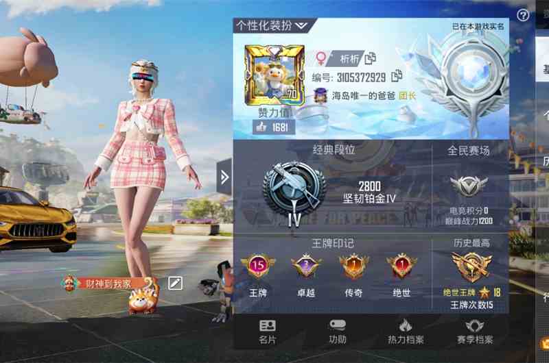 【云游堂】 【可二次实名】【zy安卓q区6粉装3载具 热力值:96040】历史最高段位:超级王牌7星 王牌印记18次 等级:lv.71, 9粉装,6粉呛,3载具,20粉色战备,233套装,274呛械,327装备,2飞行器,192战备; 热门套装:套装-金羽特工,套装-奇异狩猎者,套装-暗影哥特,套装-深海小丑鱼,套装-龟仙人;粉色套装:粉装-快乐主宰,粉装-深渊皇后,粉装-王牌四分卫,粉装-缤纷油彩,粉装-幻彩马卡龙,粉装-冰霜白皇,粉装-绚金战神,粉装-洛天依,粉装-星穹咏叹调;粉色呛械:akm-炫紫旋律[6级],m416-五爪金龙[7级],m762-激战未来[7级],kar98k-伏魔团[4级],kar98k-巳巳如意[5级],dp-28-暗夜鎏金[6级];载具:合金龙骨(蓝),特斯拉roadster(沁心粉),特斯拉model3(珍珠白),粉色战备:齐天大圣飞行器,激战未来飞行器,星穹咏叹调降落伞,银刃赛罗降落伞,烈焰拳霸降落伞,梦幻火箭降落伞,古堡领主降落伞,pel轰鸣竞梦者降落伞,王牌四分卫降落伞,星之彼岸降落伞,潮汐统领降落伞,神秘黑猫降落伞,香水柠檬降落伞,深海曼妙降落伞,洛神天依降落伞,银河战甲降落伞,夏日绵绵冰降落伞,凝视深渊降落伞,百万伏特降落伞,幻彩电音降落伞;其他套装:套装-金羽特工,套装-奇异狩猎者,套装-暗影哥特,套装-深海小丑鱼,套装-龟仙人,套装-黄色运动,套装-蓝色运动,套装-黄色伏地魔,套装-白色伏地魔,套装-黑色伏地魔,套装-骑行爱好者,套装-登山爱好者,套装-冰川格斗者,套装-壁垒格斗者,套装-深海格斗者,套装-帅气教官,套装-竞技名士,套装-深蓝色名流,套装-湖蓝色名流,套装-黄色名流,套装-棕色飞行服,套装-游猎者,套装-迅猛虎鲸,套装-野性山猫,套装-长空猛禽,套装-沙漠雄狮,套装-竞技勇士朋克,套装-黎明保卫者,套装-蓝色守护者,套装-海岛探路者,套装-沙漠探路者,