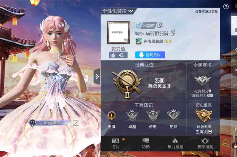 【云游堂】 【可二次实名】ljh【找回包赔】ak022879 安卓q 热力值51049 【套装113 呛皮158 载具2 飞行器5】 【粉装 茉莉星 闲梦青缨 金属狂野 智能音符 深渊皇后 】 【载具 玛莎拉蒂ghibli(粉) 合金龙骨(蓝)】 【飞行器 梦幻火箭飞行器 青春物语飞行器 】 【呛皮 dp-28-豹影疾电[2级] aug-超新星[4级] scar-l-纯梦嫁纱[4级] ump45-恐龙拽拽[4级 akm-炫紫旋律[4级] m416-五爪金龙[5级] 】 -----【更多炫彩背包/光效/名片/武器具体看图!截图展示段位不代实际段位,赛季更新等不可抗拒因素发生变化、时限道具不保证所剩时间、标题未写送点卷默认不送】【主播担保+安全至上+性价比 买号卖号只选金牌商家一左友】