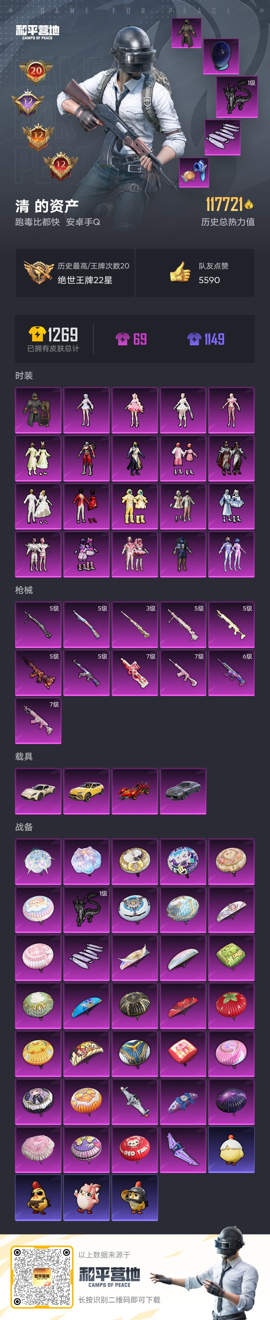 【云游堂】 【可二次实名】2170812-苹果qq历史总热力值:93665红装数量:1粉装数量:19特效呛数量:8载具数量:8王牌印记:8历史最高段位:超级王牌11星套装数量:187时装数量:658呛械数量:224战备数量:210装备数量:340载具:fmulaegen2(巅峰兰)擎天重拳永恒黄蜂最终圣卫者摩托车杜卡迪panigalev4(星耀白)布加迪威龙(海洋蓝)照夜玉狮子赤兔时装:沙丘之主-图卡盟(3级)套装-垂柳戏鸭套装-天使彩虹糖套装-天衡星秤套装-宝贝奶油派套装-拂晓神骑套装-梦幻火箭套装-苍蓝魅影套装-莲影清波套装-金丰海韵套装-闪光银龙套装-飒粉甜心女娲后裔-赵灵儿角色-初号机款机体服角色-呆萌星弥角色-复仇流浪者角色-宙之时溯角色-幻影角色-星云暗核角色-洛天依套装-ag战队服套装-alanwalker套装-ss20特训套装-ss21特训套装-ss22特训套装-ss23特训套装-ss24特训套装-ss25特训套装-ss26特训套装-ss27特训套装-ss28特训套装-ss29特训套装-ss30特训套装-ss31特训套装-ss32特训套装-ss33特训套装-tianba追光队服套装-wifi精灵套装-万圣娃娃套装-不羁荧光套装-丝绸行者套装-光之冒险套装-冰冻风暴套装-冰川特警套装-冰河战士套装-冷焰舞者套装-创世·幻影套装-千禧之恋套装-原初圣火套装-呆萌铁蟹套装-和煦暖阳套装-团圆交子套装-坚韧舞者套装-夏雨游龙套装-大橘大利套装-天籁歌者套装-妙红点点套装-娇憨猪猪套装-娴静芝兰套装-宝石天鹅套装-巳巳如意套装-幻世战舞者套装-幻彩翩翩套装-幻影武者套装-幻羽潜行套装-快闪甜心套装-惊鸿侠骨套装-懵萌河马套装-战术大师套装-探宝勇士套装-无暇誓言套装-明鸳圣池套装-星影赞美诗套装-星梦畅游套装-春光漫游套装-春日漫步套装-智谋强哥套装-暖心橘喵套装-暗夜傀儡套装-暗影哥特套装-本愿之火套装-朱雀圣者套装-极地朋克套装-柠萌假日套装-森林游猎者套装-水手小飞鸭套装-沙丘之歌套装-沙漠兵团套装-活力清阳套装-浪漫天命套装-海盐绵绵冰套装-涂山之恋套装-深海小丑鱼套装-清新柠檬套装-湖蓝色名流套装-漫步者套装-激萌罗小黑套装-灰色格斗者套装-热情海星套装-焰鹰斗篷套装-熠彩粉晶套装-燕燕于飞套装-牛气冲天套装-牛气满满套装-狂沙舞者套装-猎梦纪元套装-玄武圣者套装-玉兔迎春套装-王牌教练套装-甜心亚梦套装-甜蜜熊情侣套装-甜蜜菠萝套装-田园牧歌套装-白熊同盟套装-破蛋小黄鸡套装-神气柴柴套装-神秘舞者套装-福星高照套装-空岛之星套装-竞技名士套装-竞技角斗士套装-竞技达人朋克套装-紫幽梦套装-红红火火套装-纯白誓言套装-纯真浪花套装-绝对偶像套装-绯格组合套装-缤纷果语套装-耀粉歌者套装-老实芭蕉套装-荣耀套装-荷畔雨呱套装-莱茵河畔套装-萌趣咩咩套装-萌黄之夏套装-萝兰蝴蝶套装-蓝冰羽套装-蓝色运动套装-蓝调潮人套装-虚音幻奏套装-蝶变套装-街头潮人套装-贝斯之夜套装-贵族骑装套装-轻风白浪套装-辉光之湖套装-迅捷狂鲨套装-逆风勇士套装-都市猎人套装-野性战心套装-金耀舞者套装-锦衣飞扬套装-长空猛禽套装-闪耀星光套装-雏菊兔兔套装-雪山精英套装-雪晶战甲套装-霓虹街区套装-青涩时光套装-青玉碎影套装-风暴特警套装-飞狐塔尔斯套装-飞行日记套装-鱼渊荷华套装-鹤鸣套装-鹰眼刺客套装-麻辣教官套装-黄色名流套装-黑色伏地魔套装-龙的传人套装-龙魂突击队套装-龟仙人玩偶服-菲菲角色-mark.06角色-军刀雅典娜角色-孙悟空角色-忠义严颜角色-忠猛周仓角色-忠真马岱角色-真理款战斗服角色-英勇保护者角色-赵灵儿角色-酒剑仙角色-阿奴角色-零款战斗服角色-风玲呛械:akm-幽焰骑士(3级)akm-星际浪客(1级)m416-五爪金龙(5级)scar-l-纯梦嫁纱(5级)ac-val-乌木金纹ac-val-冠军兔兔ac-val-天降萌叽ac-val-快闪甜心ac-val-甜心亚梦akm-四圣焕新akm-墨染幽兰akm-奇异狩猎者akm-环太平洋akm-缤纷海域akm-霓虹街区akm-龙的传人aug-圣光天使aug-天降萌叽aug-耀粉歌者aug-闲梦青缨g36c-懵萌河马g36c-星穹咏叹调groza-彩虹符号groza-影袭groza-懵萌河马groza-田园牧歌m16a4-冰河战士m16a4-幻世战舞者m16a4-甜心亚梦m416-月影鸳鸯m416-糯团青竹m416-蓝色火焰m762-天降萌叽m762-奇异狩猎者m762-牛气冲天m762-雏菊兔兔mk47-乌木金纹mk47-妙红点点mk47-洛神天依mk47-炫光之旅mk47-荒漠赏金qbz-原初圣火qbz-彩虹符号qbz-未来歌姬qbz-潮汐统领qbz-纯真浪花scar-l-炫彩节奏scar-l-玉兔迎春scar-l-红色方程式scar-l-青丘仙客蜜獾-垂柳戏鸭蜜獾-天降萌叽蜜獾-娇憨猪猪蜜獾-精灵梦叶罗丽kar98k-巳巳如意(5级)amr-妙红点点awm-圣堂之誓awm-垂柳戏鸭awm-焰鹰斗篷awm-纯真浪花awm-胡桃卫兵awm-音爆索尼克kar98k-六号树人kar98k-彩虹符号kar98k-影袭kar98k-星穹咏叹调kar98k-梦幻火箭kar98k-红色方程式m200-惊鸿侠骨m24-奇异狩猎者m24-影袭m24-拂晓神骑m24-樱桃泡泡莫辛纳甘-乌木金纹莫辛纳甘-懵萌河马m417-惊鸿侠骨m417-猪猪侠mk20-h-快闪甜心mk20-h-竞速先锋mini14-原初圣火mini14-旋转彩虹mini14-梦幻火箭mini14-辉耀战甲mini14-雏菊兔兔mk14-乌木金纹mk14-冰河战士mk14-海螺星光mk14-童趣迷兔mk14-紫幽梦sks-怪兽之王sks-未来歌姬sks-糯团青竹slr-pec最牛战神slr-四圣焕新slr-娇憨猪猪slr-彩虹符号vss-星之彼岸vss-田园牧歌p90-沙丘之主(3级)vect-环太平洋(4级)mp5k-飒粉甜心p90-巳巳如意p90-快闪甜心p90-金蛇镇世p90-闪光银龙ump45-涂山之恋ump45-猪猪侠uzi-冰河战士uzi-啾咪啾咪uzi-天降萌叽uzi-娇憨猪猪uzi-影袭uzi-红色方程式vect-焰