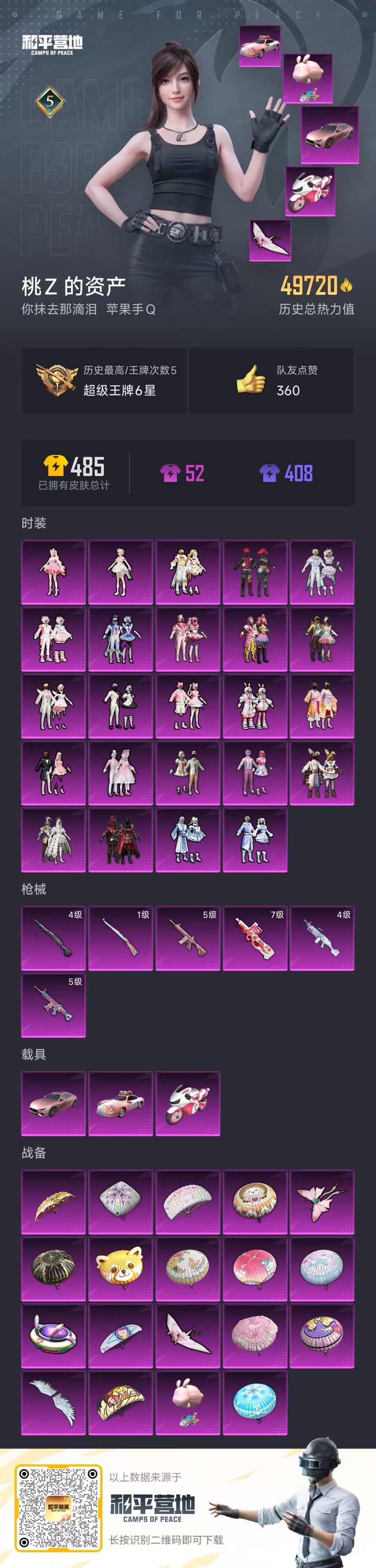 【云游堂】 2122711-安卓qq历史总热力值:65398粉装数量:14特效呛数量:8王牌印记:9历史最高段位:超级王牌11星套装数量:142时装数量:490呛械数量:186战备数量:126装备数量:220时装:套装-冰川幽秘套装-冰霜白皇套装-寒光使者套装-山涧鹿灵套装-彩虹鹿灵套装-朗月武圣套装-第五大道套装-草莓生巧套装-莲影清波套装-蜜桃特工套装-蝶舞蔷薇角色-樱桃泡泡角色-洛天依角色-烟云彩露套装-ss16特训套装-ss17特训套装-ss19特训套装-ss20特训套装-ss21特训套装-ss22特训套装-ss23特训套装-ss24特训套装-ss25特训套装-ss26特训套装-ss27特训套装-ss28特训套装-ss30特训套装-ss31特训套装-ss32特训套装-ss33特训套装-ss34特训套装-人气偶像套装-元气发射套装-光之冒险套装-兔兔白日梦套装-冰川特警套装-冷焰舞者套装-凌霄紫焰套装-动感兔斯基人偶服套装-和煦暖阳套装-团圆交子套装-大橘大利套装-天籁歌者套装-奶芙汪汪套装-妙红点点套装-娇憨猪猪套装-巳巳如意套装-幻世战舞者套装-幻彩翩翩套装-幻影武者套装-幻羽潜行套装-幽夜迷踪套装-快闪甜心套装-怒火燎原套装-恋语绒绒套装-恶魔宝贝套装-惊鸿侠骨套装-懵萌河马套装-抹茶蜜豆套装-探宝勇士套装-无暇誓言套装-春光漫游套装-智慧隐士套装-暖风夏荷套装-暗夜魅影套装-朱霞炽焰套装-柠萌假日套装-梦幻奶油套装-浓情蜜辣套装-浪漫天命套装-海盐绵绵冰套装-涂山之恋套装-淡雅花蕊套装-漫游都市套装-激萌罗小黑套装-灵蜜圈圈套装-热情海星套装-热血青春套装-焰鹰斗篷套装-燕燕于飞套装-牛气冲天套装-牛气满满套装-特训学院套装-玉兔迎春套装-王牌教练套装-瑞龙福将套装-甜心亚梦套装-甜梦熊熊套装-甜蜜熊情侣套装-田园牧歌套装-电音精灵套装-神气柴柴套装-福星高照套装-空岛之星套装-竞技名士套装-紫幽梦套装-红色运动套装-纯白誓言套装-纯真浪花套装-绯格组合套装-缤纷果语套装-耀粉歌者套装-老实芭蕉套装-荣耀套装-莱茵河畔套装-萌趣咩咩套装-蓝冰羽套装-蓝彩潮人套装-蓝色守护者套装-薄荷星砂套装-薄荷蓝莓套装-虎虎生威吉莉套装-虚音幻奏套装-覆海蛟龙套装-诡面顽熊套装-轻风白浪套装-野性战心套装-锦衣飞扬套装-长空猛禽套装-音速流光套装-风华少年志套装-飞狐塔尔斯套装-飞行日记套装-飞驰魅影套装-香榭午后套装-驯鹿叮当套装-魅力单车套装-鱼渊荷华套装-鹤鸣套装-麻辣教官套装-黑夜传说套装-龟仙人角色-8号机角色-mark.06角色-乐音角色-星际旅行角色-湖雨初晴角色-狂花道·娜可露露角色-猎影月神角色-糖霜甜心角色-舰行太空角色-蝶吟花词呛械:akm-绿萝繁花(5级)m416-心之恋语(7级)scar-l-童趣迷兔(6级)ac-val-乌木金纹ac-val-天降萌叽ac-val-快闪甜心ac-val-甜心亚梦akm-江南烟雨akm-灼热熔岩akm-破晓战魂akm-虎虎生威arx-凌霄紫焰aug-天降萌叽aug-异域银装aug-耀粉歌者g36c-懵萌河马g36c-炙焰牛王groza-2b战斗服款groza-懵萌河马groza-春暖花开groza-海盐豹豹groza-田园牧歌m16a4-千金淑猫m16a4-甜心亚梦m416-糯团青竹m416-红色方程式m762-天降萌叽m762-彩虹甜喵m762-呛炮玫瑰m762-橘柚倾心m762-瑞龙福将mk47-乌木金纹mk47-妙红点点mk47-洛神天依qbz-彩虹符号qbz-洛神天依qbz-纯真浪花qbz-飞驰魅影scar-l-夏日绵绵冰scar-l-海盐豹豹scar-l-炫彩节奏scar-l-玉兔迎春蜜獾-天降萌叽蜜獾-娇憨猪猪蜜獾-绯穹魔姬kar98k-巳巳如意(5级)amr-妙红点点awm-焰鹰斗篷awm-纯真浪花kar98k-彩虹符号kar98k-洛神天依kar98k-飞驰魅影m200-惊鸿侠骨m24-炫彩节奏win94-夏日绵绵冰win94-瑞龙福将莫辛纳甘-乌木金纹莫辛纳甘-懵萌河马m417-第五大道(5级)m417-惊鸿侠骨mk20-h-快闪甜心mk20-h-莲影清波mini14-林间仙鹿mini14-涂山之恋mini14-耀粉歌者mk14-乌木金纹mk14-紫幽梦mk14-薄荷星砂qbu-烈焰拳霸sks-未来歌姬sks-炫彩节奏slr-娇憨猪猪slr-守护天翼slr-彩虹符号vss-田园牧歌aks-74u-粉粉喵呜js9-凌霄紫焰mp5k-甜蜜誓约p90-快闪甜心p90-飞驰魅影ump45-夜灯ump45-春暖花开ump45-海盐豹豹ump45-涂山之恋ump45-生命誓言ump45-蓝色火焰uzi-啾咪啾咪uzi-天降萌叽uzi-娇憨猪猪uzi-炫彩节奏vect-呛炮玫瑰vect-焰鹰斗篷vect-燕燕于飞vect-生命誓言vect-田园牧歌汤姆逊-天降萌叽汤姆逊-智耀战神汤姆逊-纯真浪花汤姆逊-耀粉歌者野牛-夜灯野牛-燕燕于飞aa12-g-纯真浪花dbs-彩虹符号dbs-焰鹰斗篷dbs-甜心亚梦s12k-夏日绵绵冰s12k-娇憨猪猪s12k-幻世战舞者s12k-瑞龙福将s12k-童趣迷兔s12k-音爆索尼克s12k-龙宫之主s1897-春暖花开s1897-暗夜鎏金s1897-炫彩节奏s1897-紫幽梦s1897-荧海星豚s1897-飞驰魅影s686-千金淑猫s686-彩虹符号s686-生命誓言s686-雪月幻音spas-12-燕燕于飞spas-12-田园牧歌dp-28-豹影疾电(5级)mg3-洛神天依(3级)pkm-江南烟雨(4级)dp-28-彩虹符号dp-28-橘柚倾心dp-28-焰鹰斗篷dp-28-甜心亚梦m249-妙红点点m249-百万伏特m249-糯团青竹mg-36-凌霄紫焰mg3-乌木金纹mg3-妙红点点mg3-幻世战舞者mg3-惊鸿侠骨mg3-瑞龙福将mg3-第五大道pkm-懵萌河马pkm-紫幽梦p92-凌霄紫焰p92-紫幽梦r45-拳皇·狂花道tmp-9-江南烟雨tmp-9-雪月幻音沙墨之鹦-快闪甜心蝎式手呛-燕燕于飞平底锅-伏魔团平底锅-光之冒险平底锅-凌霄紫焰平底锅-妙红点点平底锅-娇憨猪猪平底锅-快闪甜心平底锅-惊鸿侠骨平底锅-懵萌河马平底锅-焰鹰斗篷平底锅-瑞龙福将平底锅-甜心亚梦平底锅-田园牧歌平底锅-空岛之星平底锅-紫幽梦平底锅-纯梦嫁纱平底锅-纯真浪花平底锅-飞驰魅影撬棍