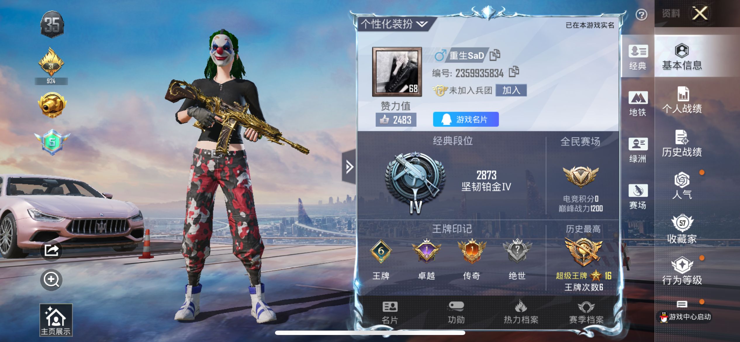 【云游堂】 【可二次实名】2177529-可二次-苹果q-6稀有1载具7粉装3特效呛21热门【极品素材身法追猎怪诞乔克(小丑)雪国幻梦木乃伊赤蝎天命洛天依小丑鼻黑色高级特训上衣奇迹天团老6服红眼罩等等】155套装166呛皮57056热力值6印记历史超级王牌16星【6稀有】木乃伊奇异狩猎者赤蝎幽灵akm-缤纷海域akm-百万伏特浪漫天命【1载具】玛莎拉蒂粉色【7粉装】雪国幻梦洛天依水曜玄武怪诞乔克守护骑士数码大师恐龙拽拽【3特效呛】m416-五爪金龙(7级)mg3-洛神天依(6级)ump45-恐龙拽拽(5级)【21热门】龟仙人雪山精英动感兔斯基爱崽白熊梦魇先生鹰眼刺客奇迹天团神秘黑猫暗夜契约暗影哥特纯白誓言豚鼠丹丹漫步者抹茶蜜豆白虎圣者破蛋小黄鸡m416-魔法学院m416-仓鼠灰灰m762-奇异狩猎者m24-奇异狩猎者s686-奇异狩猎者【6头盔】梦幻火箭头盔雪国精灵头盔折纸暴龙头盔水曜玄武头盔百万伏特头盔深海小丑鱼头盔【8背包】精灵迷巫背包雪国精灵背包折纸暴龙背包水曜玄武背包百万伏特背包潮萌小黄鸭背包心之恋语背包夏日绵绵冰背包营地id:595687166