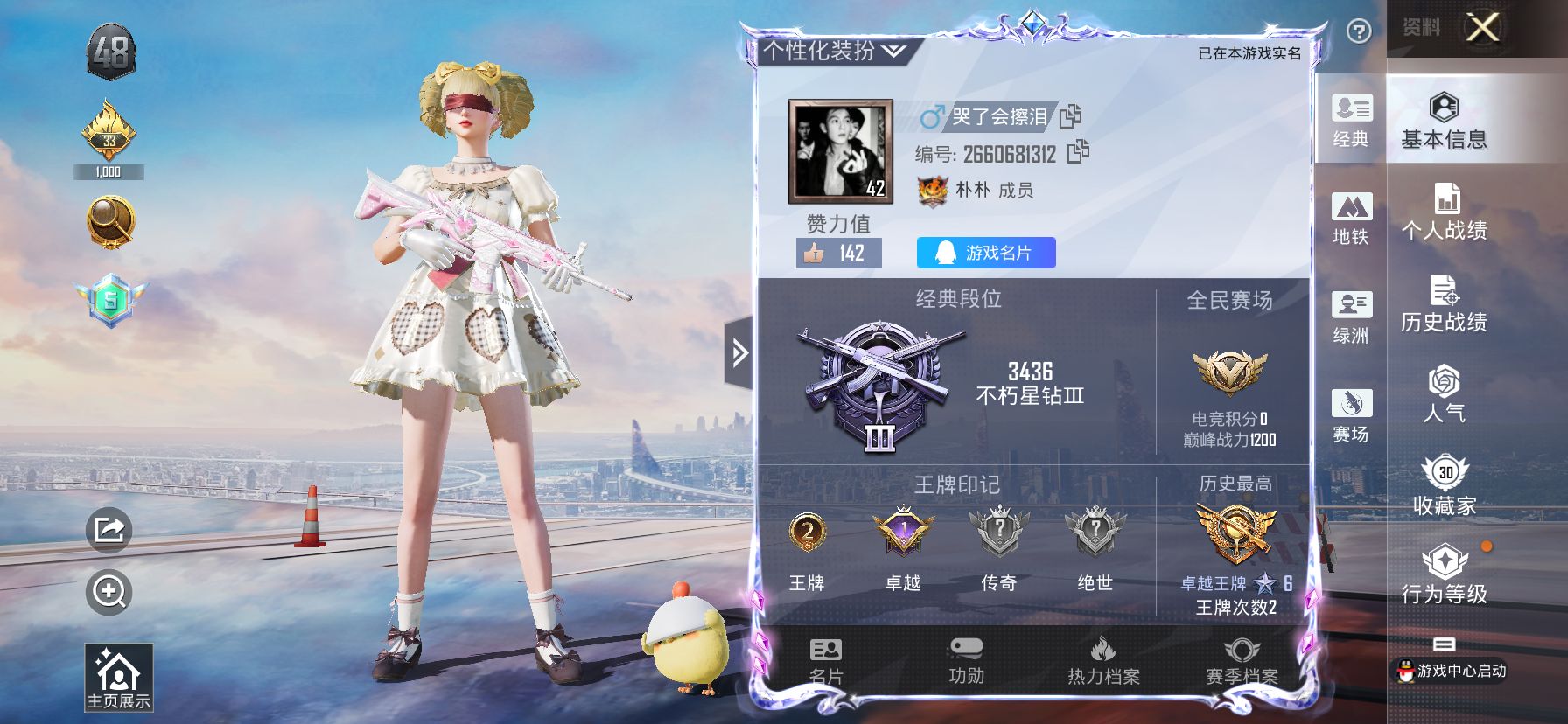 【云游堂】 【可二次实名】2级龙灵!5级暖羊咩咩!5级巳巳如意!6w热力值-D10882.IOSQQ-142套装、1神装、14粉装、5粉枪3个满级、4载具、15飞行器-1神装圣域龙灵-14粉装幻彩电音、千金淑猫、蜜语绒猫、萌物绒绒、星梦奇缘、第五大道、仲夏莫吉托 【稀有资产】圣域龙灵-瑞拉[2级]/套装-浪漫天命/套装-潮萌小黄鸭/套装-龟仙人/玩偶服-小狗蛇点点/套装-红熊茄茄/玩偶服-懒羊羊/角色-摩登魅猫/套装-绒宝小鹅/角色-临安公主/套装-幸运萌趣趣/套装-圣穹绘梦/套装-虚空漩涡/角色-冰公主 【粉色套装】套装-甜心巧克力/套装-宝贝奶油派/套装-天使彩虹糖/套装-缤纷油彩/套装-放客神游/套装-馨动时刻/套装-冰川红玫/套装-第五大道/套装-仲夏莫吉托/套装-萌物绒绒/套装-蜜语绒猫/角色-星梦奇缘/角色-千金淑猫/套装-幻彩电音 【粉色枪皮】AUG-暖羊咩咩[5级]/Kar98K-巳巳如意[5级]/Kar98K-圣域龙灵[3级]/SPAS-12-蜜语绒猫[6级]/DP-28-豹影疾电[5级] 【载具】最终圣卫者摩托车/晶梦灵驹/辉羽雀灵自行车 【僚机】僚机-圣域龙宝 【飞行器】龙翔九天飞行器[1级]/御兔特攻飞行器/变形金刚飞行器/飞天猪飞行器[1级]/戏水时光飞行器/彩虹独角兽飞行器/圣域金龙飞行器[1级]/雀灵庇佑飞行器/镜光幻境飞行翼/镜域双华-灵镜之阶 【珍稀背包】洛神天依背包(3级)/