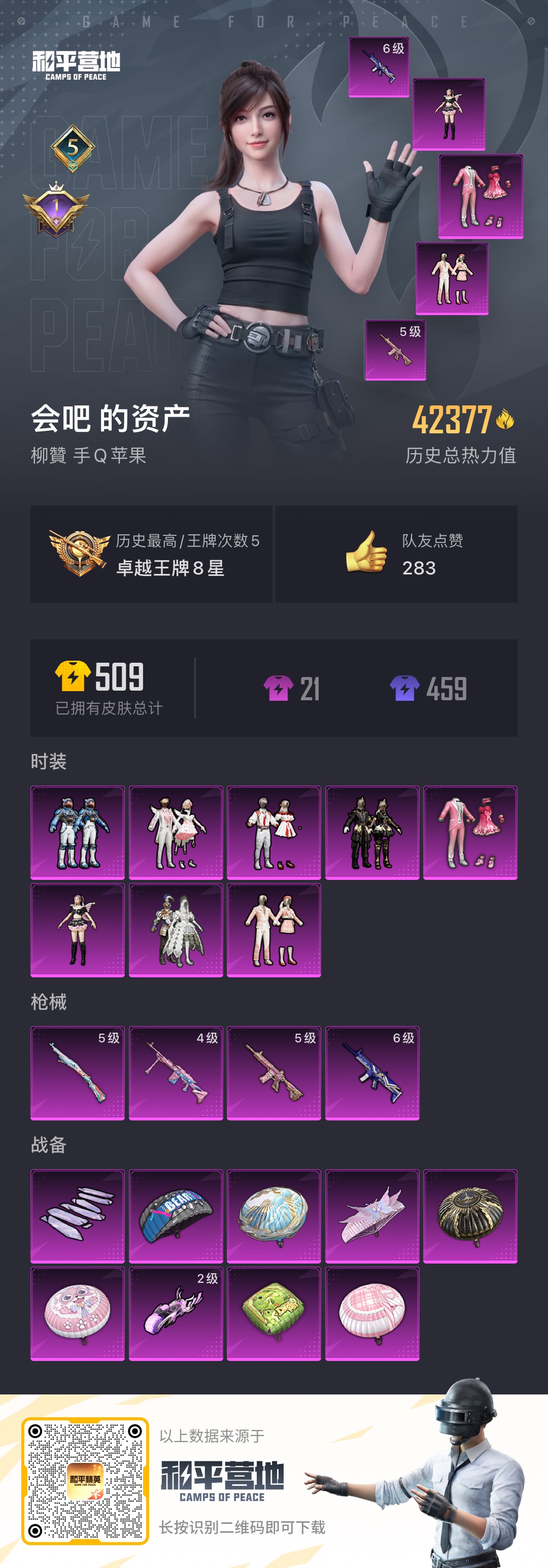 【云游堂】 【可二次实名】2176867-有二次苹果q-42377热力值5王牌印记历史卓越王牌8星99套装134呛皮【2稀有】akm-缤纷海域scar-l-粉色回忆【8粉装】白兰星未来领航者粉色回忆第五大道暗夜鎏金冰霜白皇冰川粉黛冰川红玫【4特效呛】m416-心之恋语(5级)kar98k-巳巳如意(5级)pkm-守护天翼(4级)scar-l-青春物语(6级)【10热门】龟仙人奶芙汪汪激萌罗小黑胖达团团神秘黑猫暗影哥特粉红小猪豚鼠丹丹破蛋小黄鸡弄潮海豚【1头盔】甜心宝贝头盔【1背包】神秘黑猫背包营地id:956522981