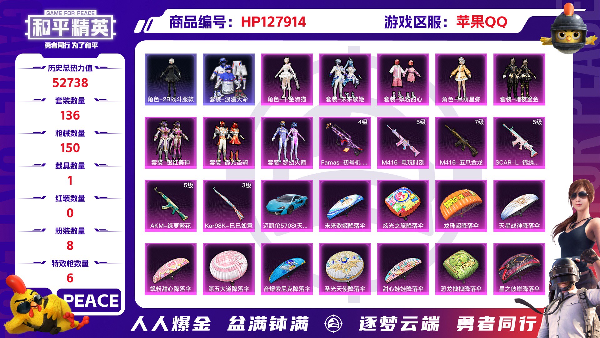 【云游堂】 【可二次实名】2109650-(可二次实名)苹果q-115252热力值15王牌印记历史无敌战神(ss32战神框地铁满天赋雪国巧克力猪妹小狐萌萌小番茄马卡龙兔兔白日梦小黄鸭圆圆喜羊羊发光眼罩粉熊包都市赤蝎金鞋)249套装286呛皮【2载具】最终圣卫者摩托车俏皮小熊猫【6稀有】奇异狩猎者赤蝎幽灵都市猎人浪漫天命派对舞王派对舞王(金靴子)【35粉装】梦幻火箭小蓝美琪雪国幻梦奇迹舞步美琪绯穹魔姬宝贝奶油派天使彩虹糖甜心巧克力千金淑猫金丰海韵星穹咏叹调太空嘟嘟缤纷油彩放客神游星空武士第五大道新星烈龙花间之火童趣迷兔冰霜白皇炙焰红王暖熊萌萌霞光圣骑甜梦小狐冰川红玫蜜桃特工海盐物语山涧鹿灵彩虹鹿灵天之羽翼寒光使者黄伞悠悠黑伞漫漫碧影闪光【16特效呛】m416-电玩时刻(5级)m416-灵猫魔法师(3级)kar98k-巳巳如意(5级)dp-28-豹影疾电(3级)svd-月影灵韵(2级)aug-暖羊咩咩(5级)mk14-甜梦熊击(5级)amr-智耀战神(5级)m24-镜域双华(3级)groza-巴啦啦小魔仙(7级)scar-l-童趣迷兔(7级)ump45-相思残雪(7级)akm-梦之光华(5级)m249-蓝莓炮弹(7级)平底锅-林间仙鹿(7级)破片手留单-瓶中星球(7级)【3飞行器】暖熊萌萌飞行器星夜魔法师飞行翼天之羽翼飞行器【31热门】mark.06龟仙人红熊茄茄雪山精英动感兔斯基潮萌小黄鸭爱崽白熊呆萌铁蟹万圣娃娃鹰眼刺客兔兔白日梦奶芙汪汪激萌罗小黑迅捷狂鲨深海小丑鱼胖达圆圆胖达团团暗影哥特团圆交子瑞龙福将星河浪客漫步者韶华初心破蛋小黄鸡极速红龙英勇保护者弄潮海豚m762-奇异狩猎者m762-瑞龙福将s686-奇异狩猎者mk47-林间仙鹿【5头盔】梦幻火箭头盔雪国精灵头盔甜心宝贝头盔深海小丑鱼头盔花间之火头盔【5背包】梦幻火箭背包雪国精灵背包甜心宝贝背包萌熊伴侣背包深海小丑鱼背包营地id:762534724