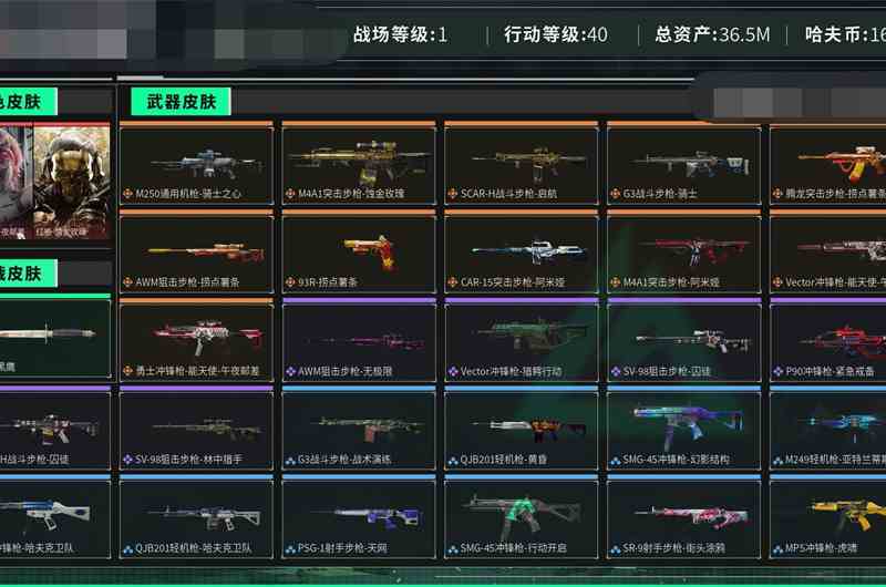【云游堂】 sabaw5 号 【玩家信息】行动等级:41,铂金,战场等级:4 【哈夫币】108w 【总资产】55.9m 【特勤处】技术中心lv3/工作台lv2/制药台lv3/防具台lv3/仓库lv5/指挥中心lv3/训练中心lv3/靶场lv3 【烽火地带专区】总资产30m-60m 【近战皮肤】黑鹰 【角色皮肤】露娜-黑·天际线 【挂饰】爆裂鼓声 【步呛皮肤】car-15突击步呛-阿米娅/m4a1突击步呛-阿米娅/scar-h战斗步呛-囚徒 【特殊武器】复合弓-黑·天际线 【冲锋呛皮肤】勇士冲锋呛-能天使-午夜邮差/p90冲锋呛-紧急戒备/vector冲锋呛-阿萨拉文明/勇士冲锋呛-工业狂潮 【机呛皮肤】m250通用机呛-囚徒 【狙击步呛皮肤】sv-98狙击步呛-林中猎手